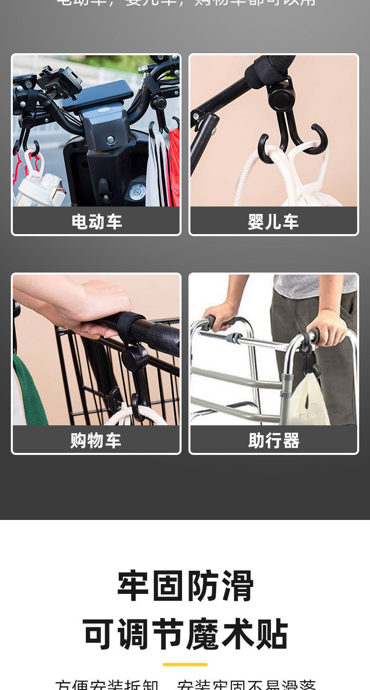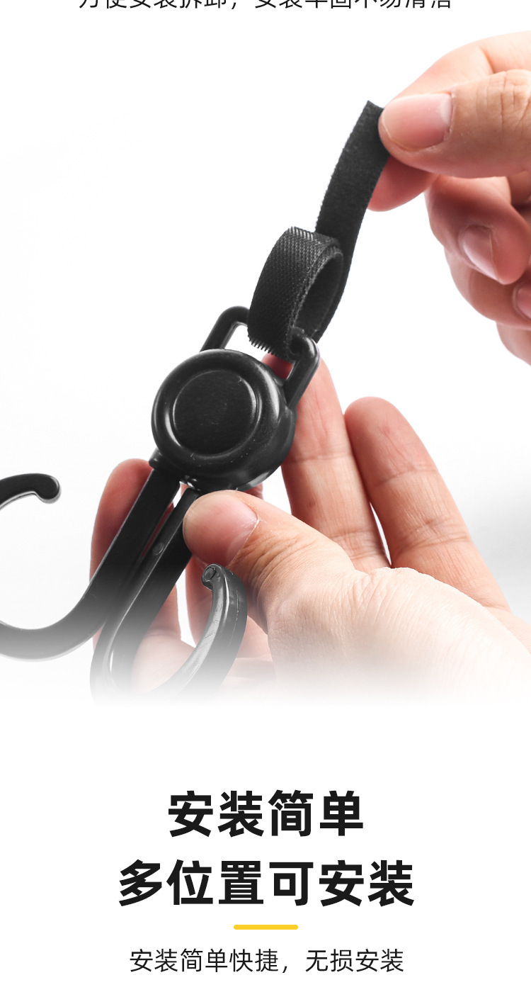 | 产品类别 | 电动车铝合金挂钩 | 材质 | 塑胶+魔术贴 |