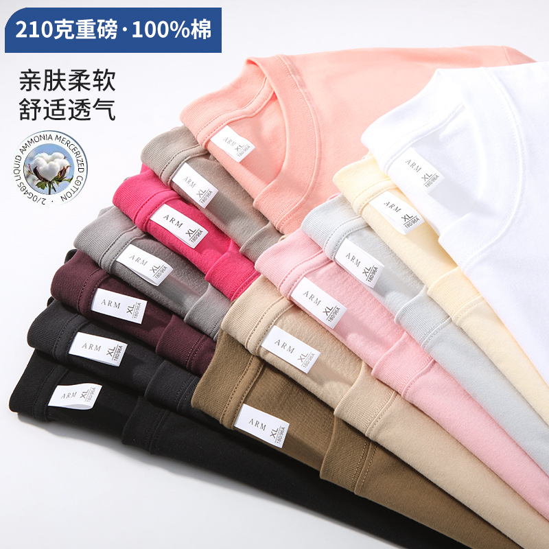 210g 코튼 티셔츠 둥근 목 단색 남성과 여성의 바닥 셔츠 반소매 재고 짧은 소매 티셔츠 캐주얼 여름