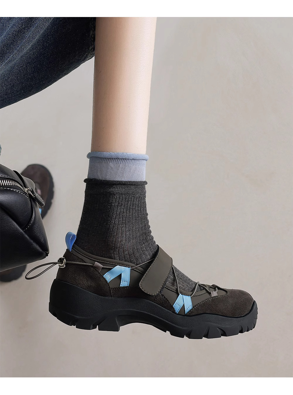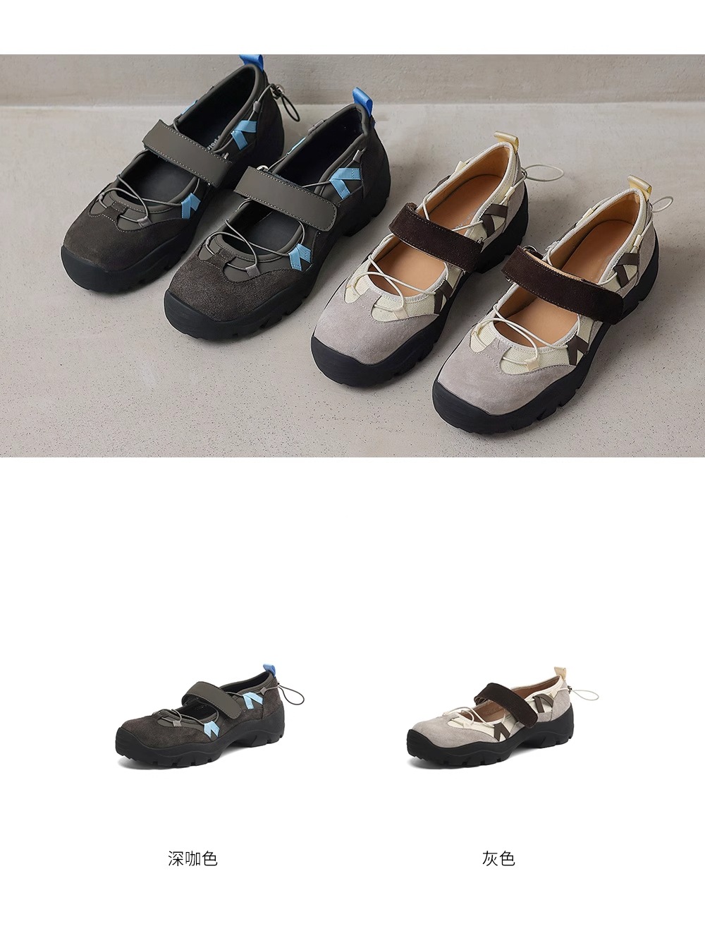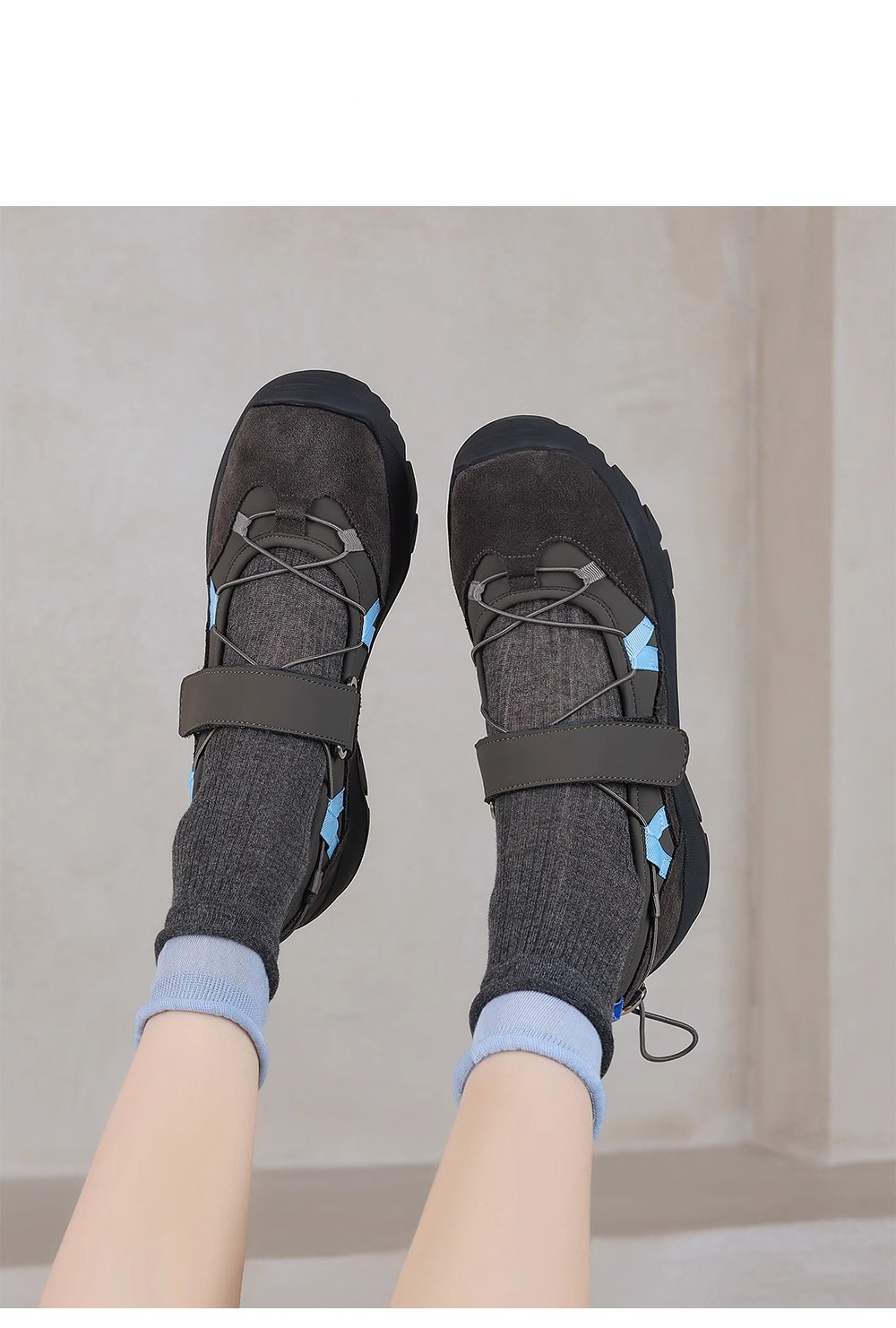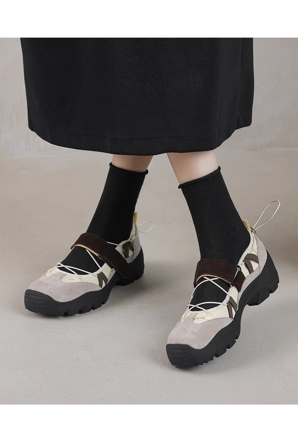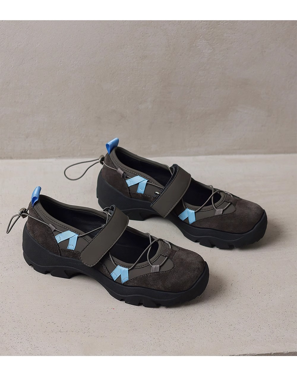 Cowhide 버전 ~ 두꺼운 밑창 색상 일치하는 스포츠 후크와 루프 Mary Jane 신발 여성 복고풍 가죽 다목적 기능성 바람 단일 신발