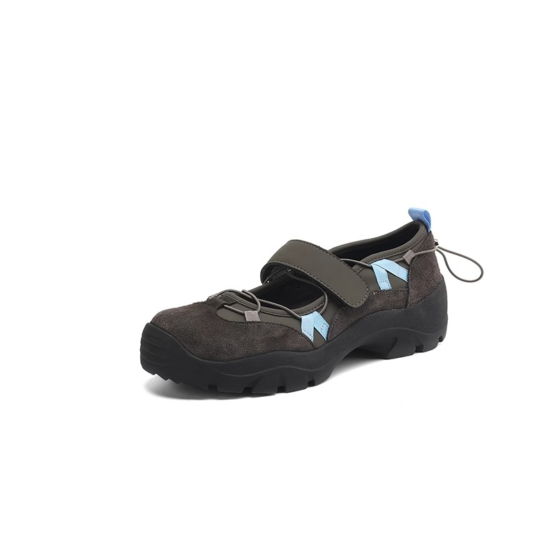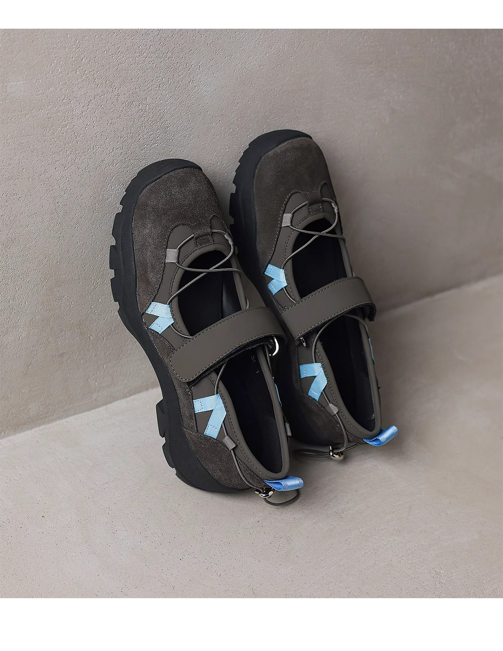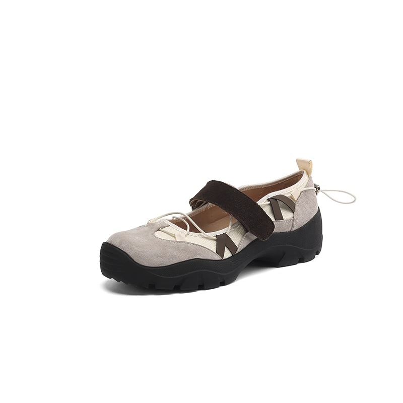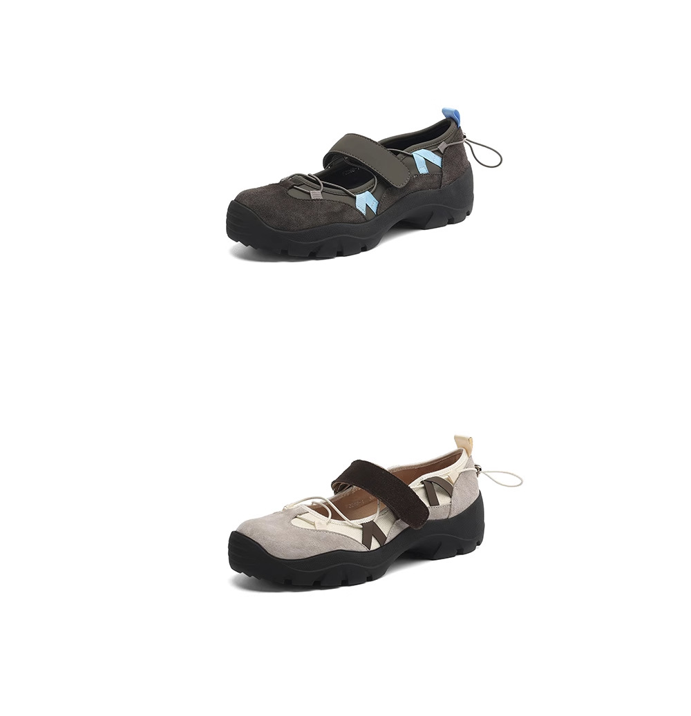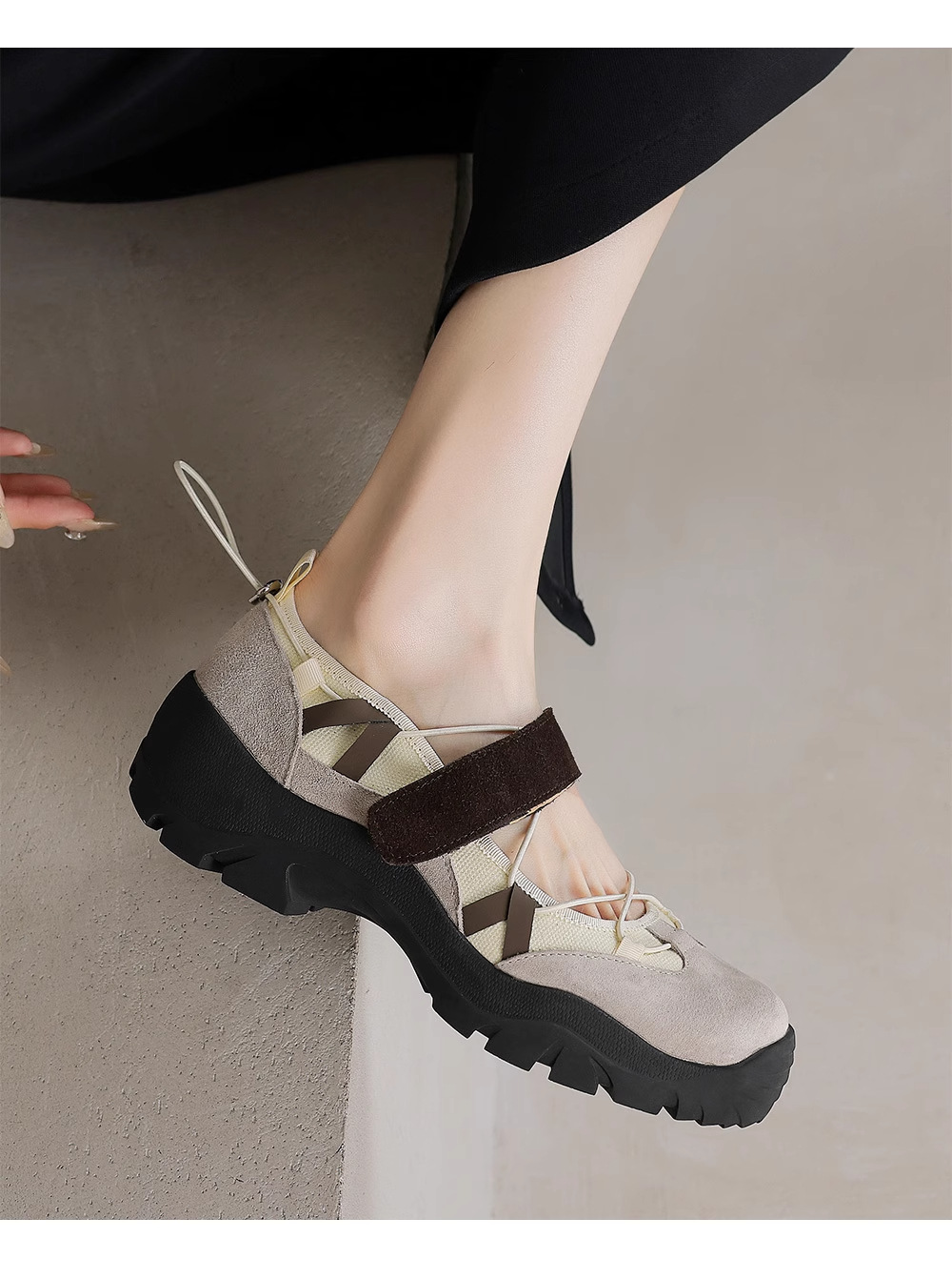 Cowhide 버전 ~ 두꺼운 밑창 색상 일치하는 스포츠 후크와 루프 Mary Jane 신발 여성 복고풍 가죽 다목적 기능성 바람 단일 신발