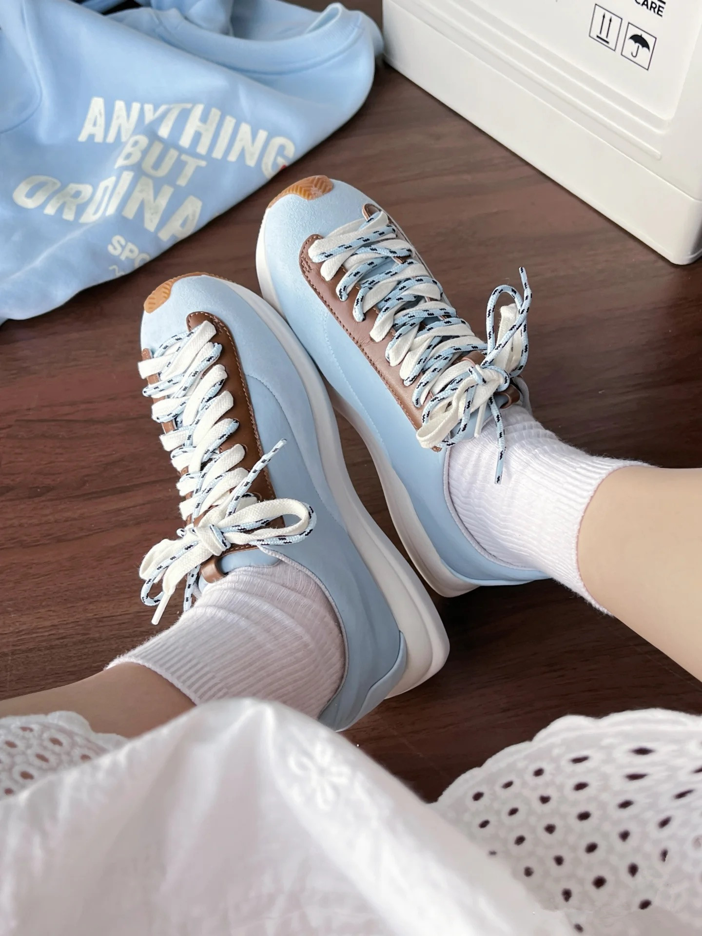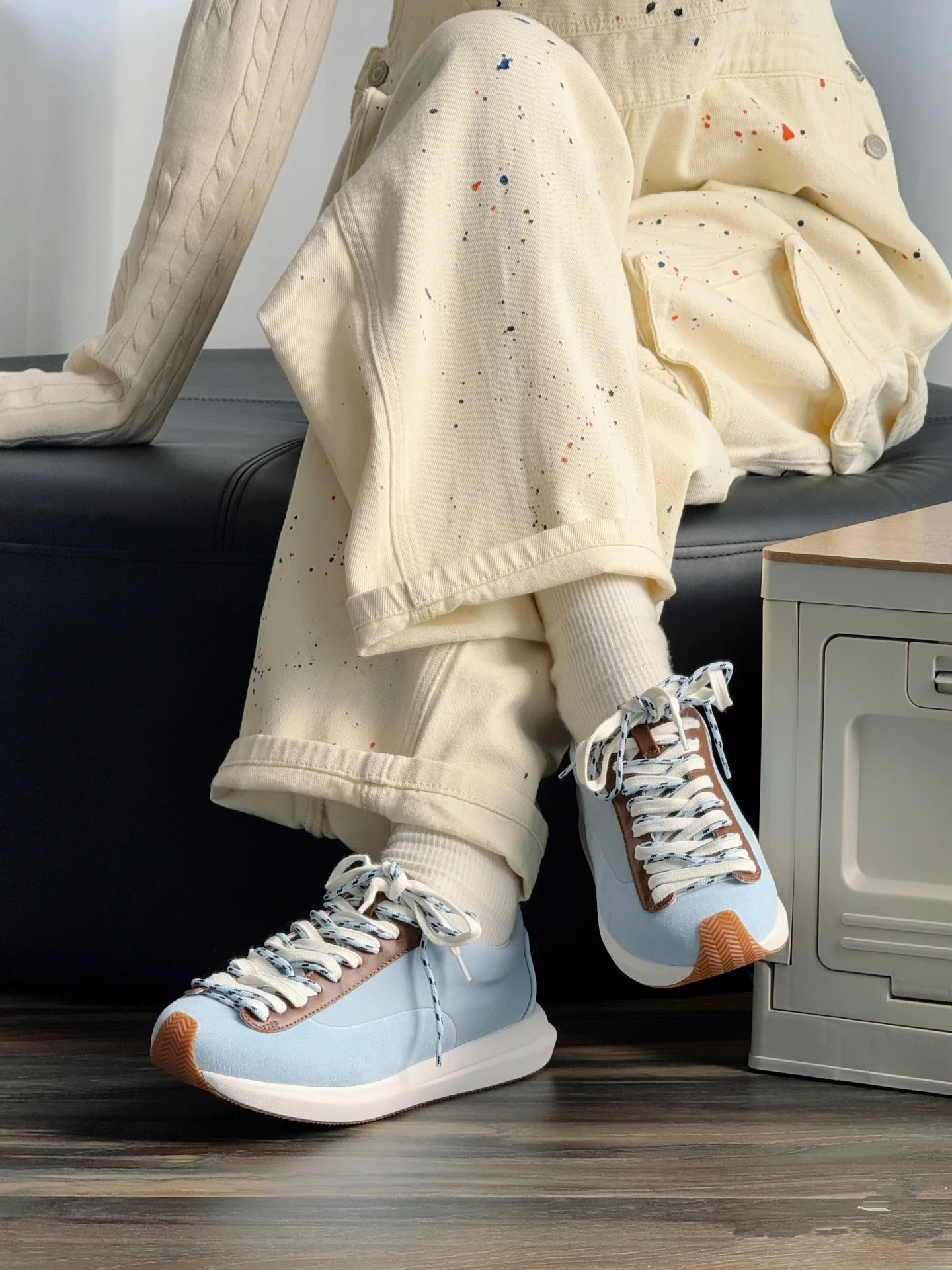 2025 이른 봄 새로운 플랫 가죽 컬러 매칭 레이스 업 레트로 독일 트레이닝 슈즈 포레스트 검프 슈즈 캐주얼 슈즈 운동화 스니커즈