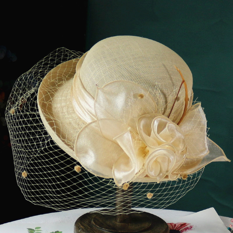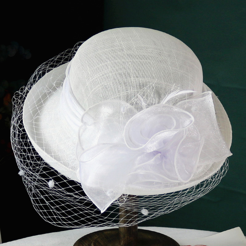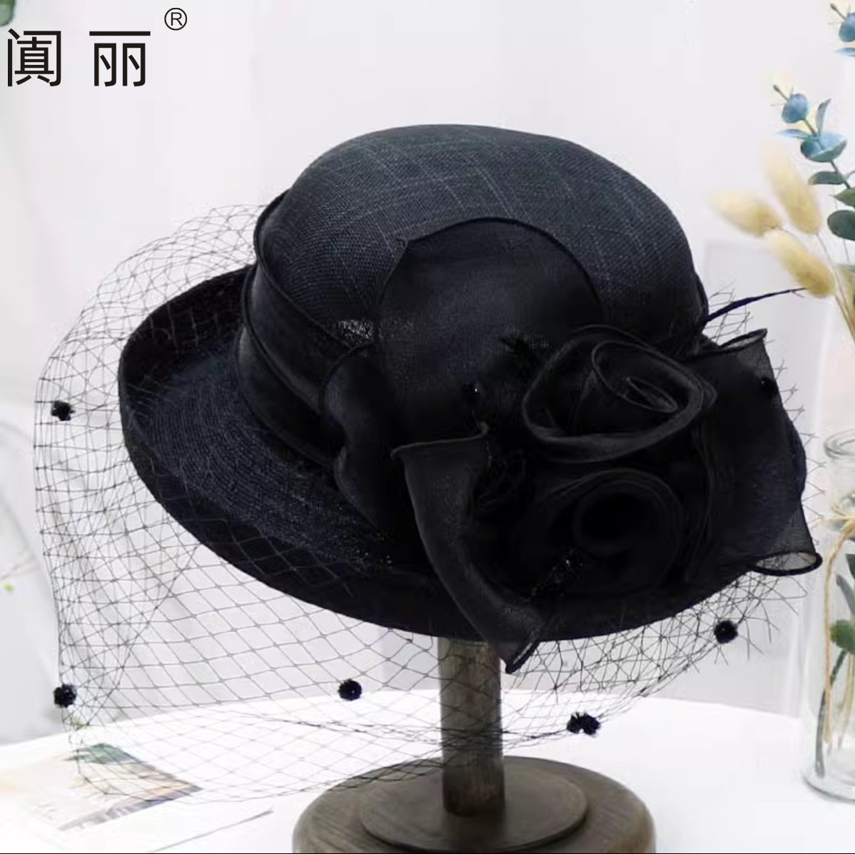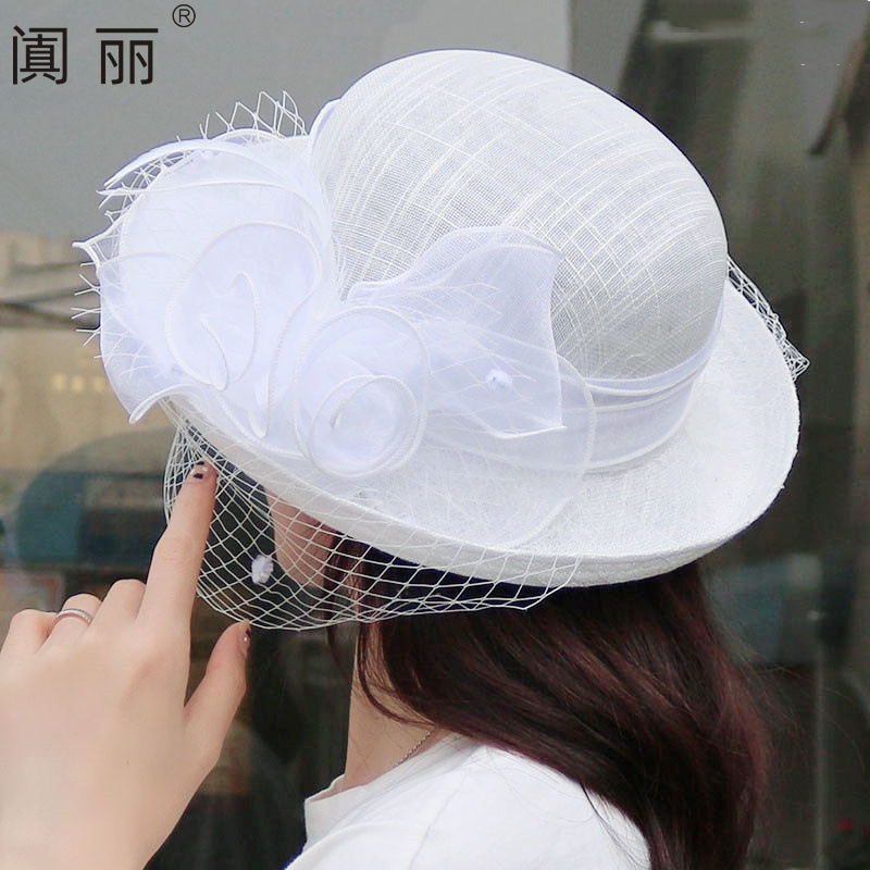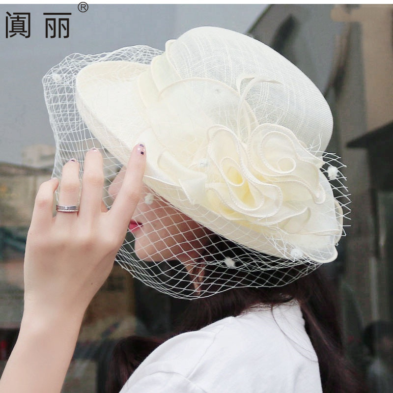 여성용 여름용 태양 모자, 프렌치 스타일의 우아한 메쉬 얼굴 가리개 태양 모자, 컬링 꽃 모자, 영국 복고풍 연예인 모자