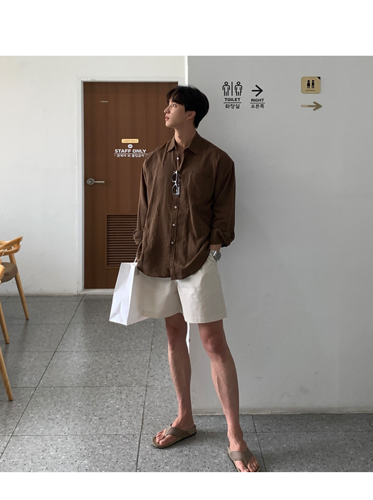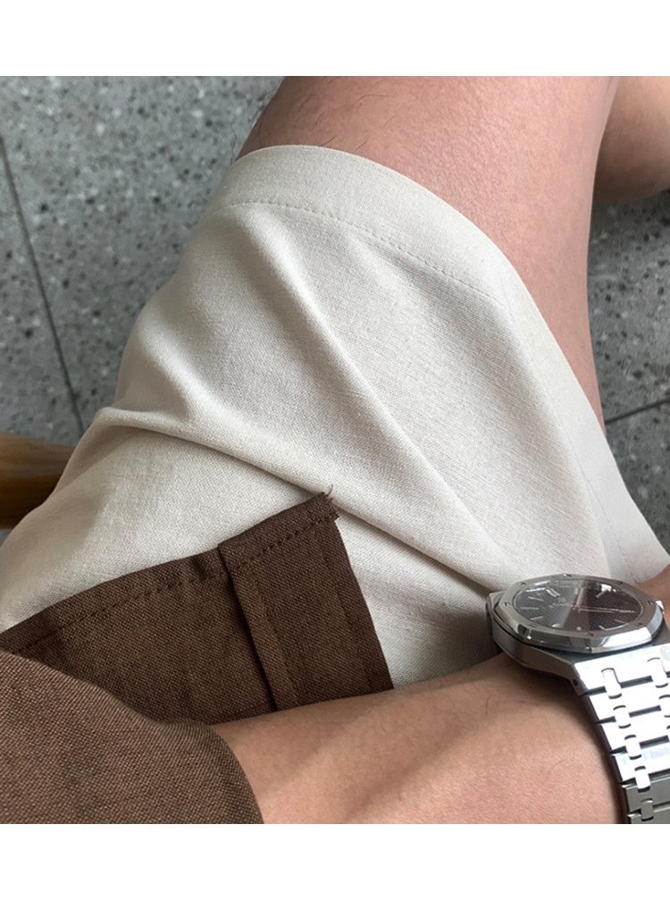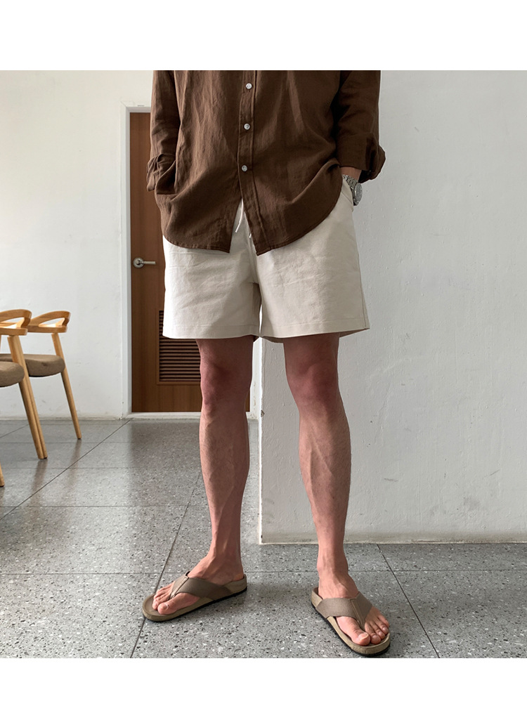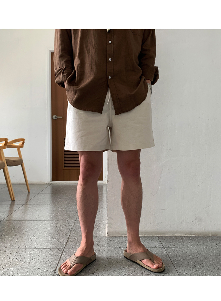살구색 리넨 작업복 반바지 남자 여름 트렌디 브랜드 일본 스포츠 5 점 바지 한국식 올매치 스트레이트 캐주얼 바지
