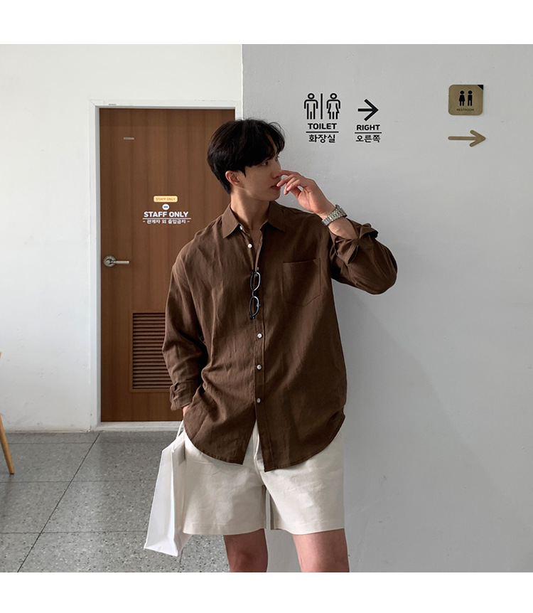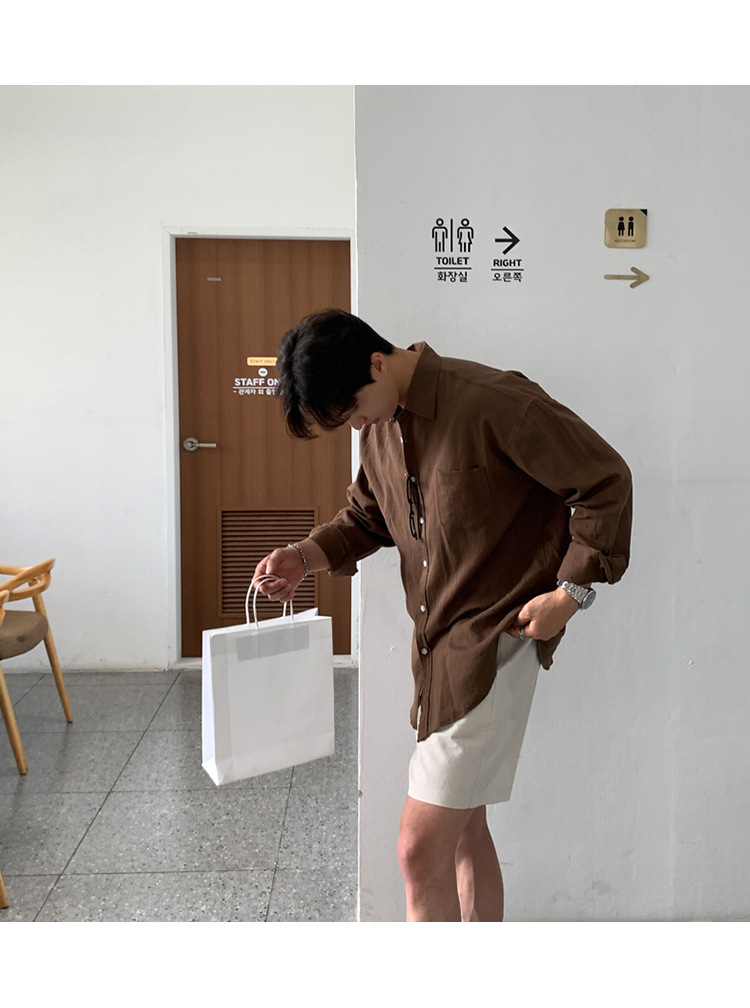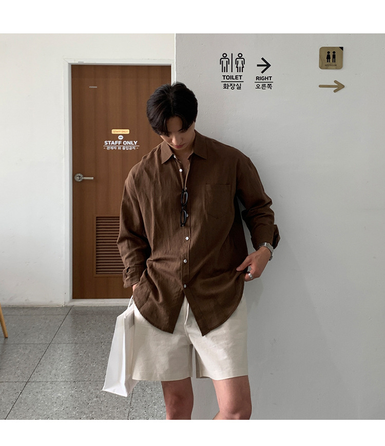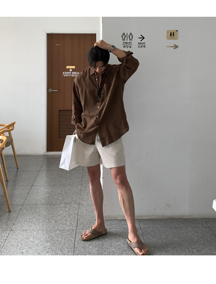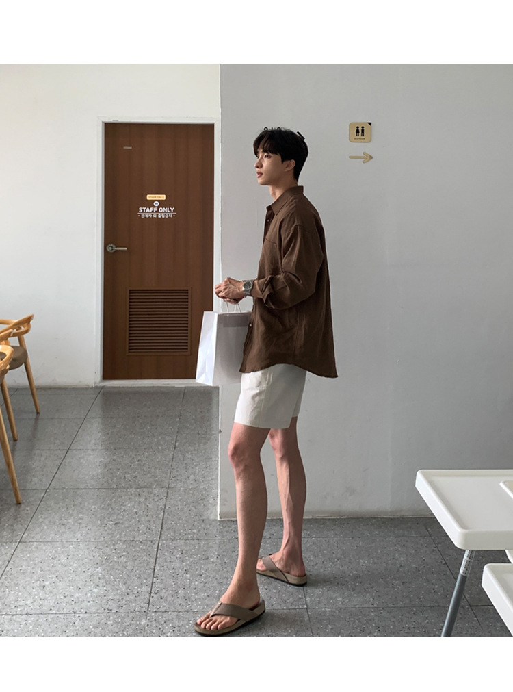 살구색 리넨 작업복 반바지 남자 여름 트렌디 브랜드 일본 스포츠 5 점 바지 한국식 올매치 스트레이트 캐주얼 바지