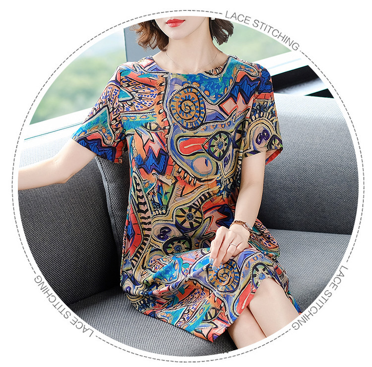 슬림 플러스 사이즈 여성 의류 여름 2025 새로운 기질 스커트 반팔 느슨한 어머니 드레스
