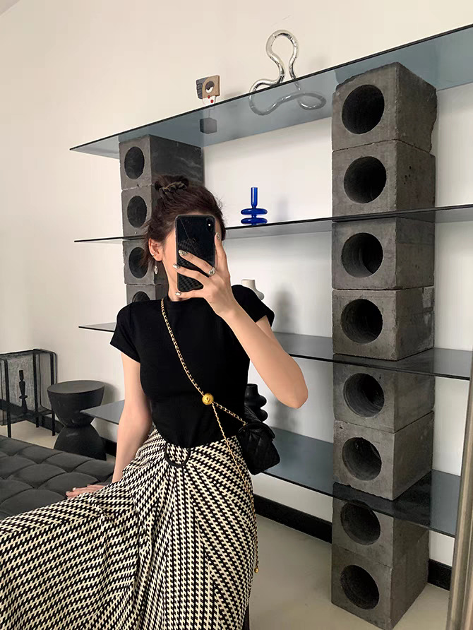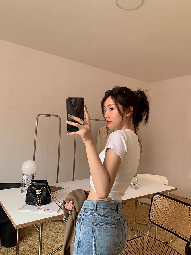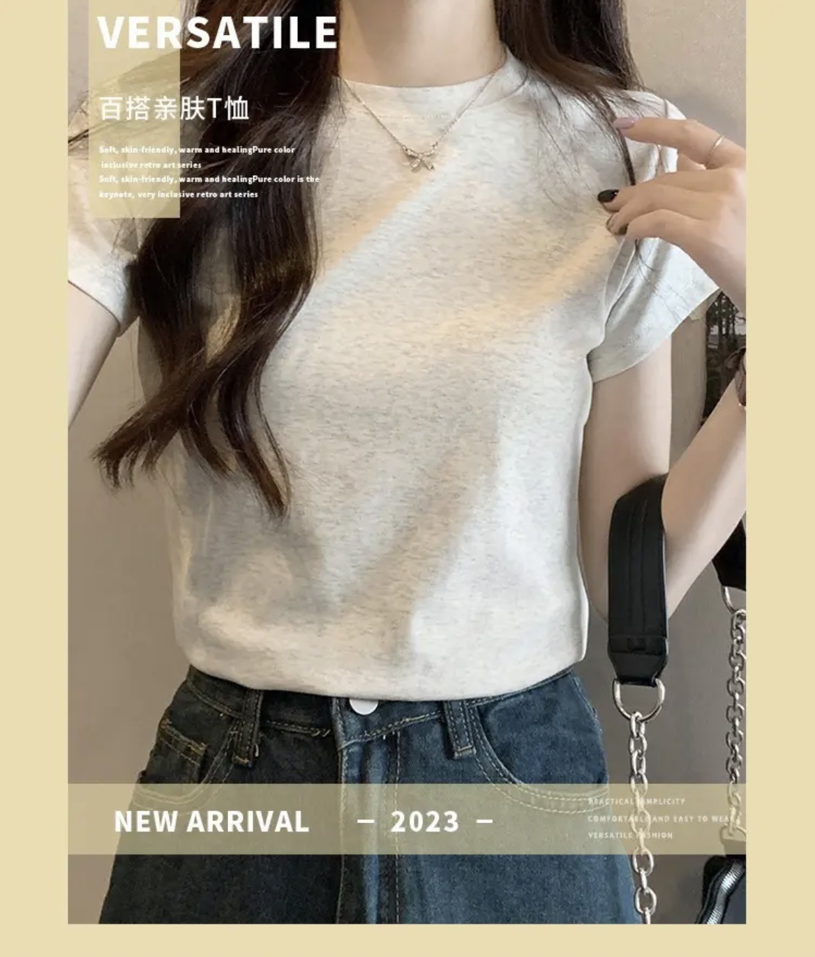 여름 여성용 오른쪽 어깨 작은 라운드 넥 티셔츠, 다용도 슬리밍, 심플한 바닥 셔츠 탑, 순면 기본 반팔