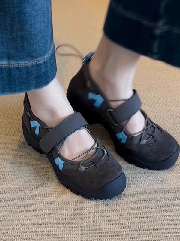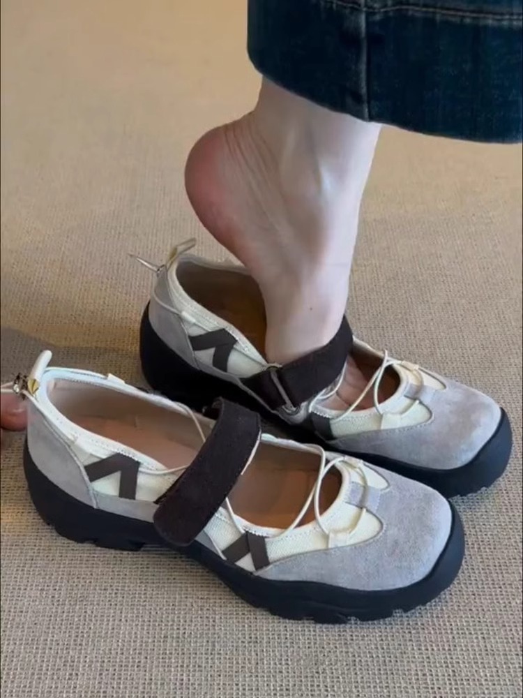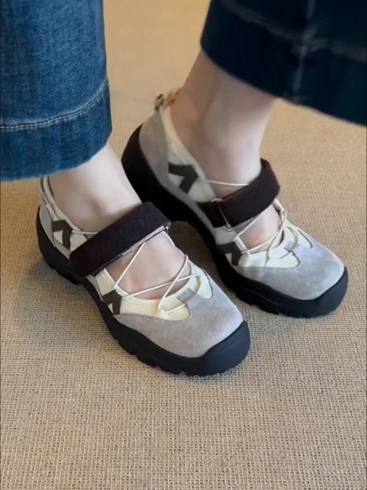 정품 가죽 레트로 두꺼운 바닥 얕은 벨크로 메리 제인 신발 여성 틈새 수제 스포츠 캐주얼 우아한 올 매치 싱글 레이어 신발
