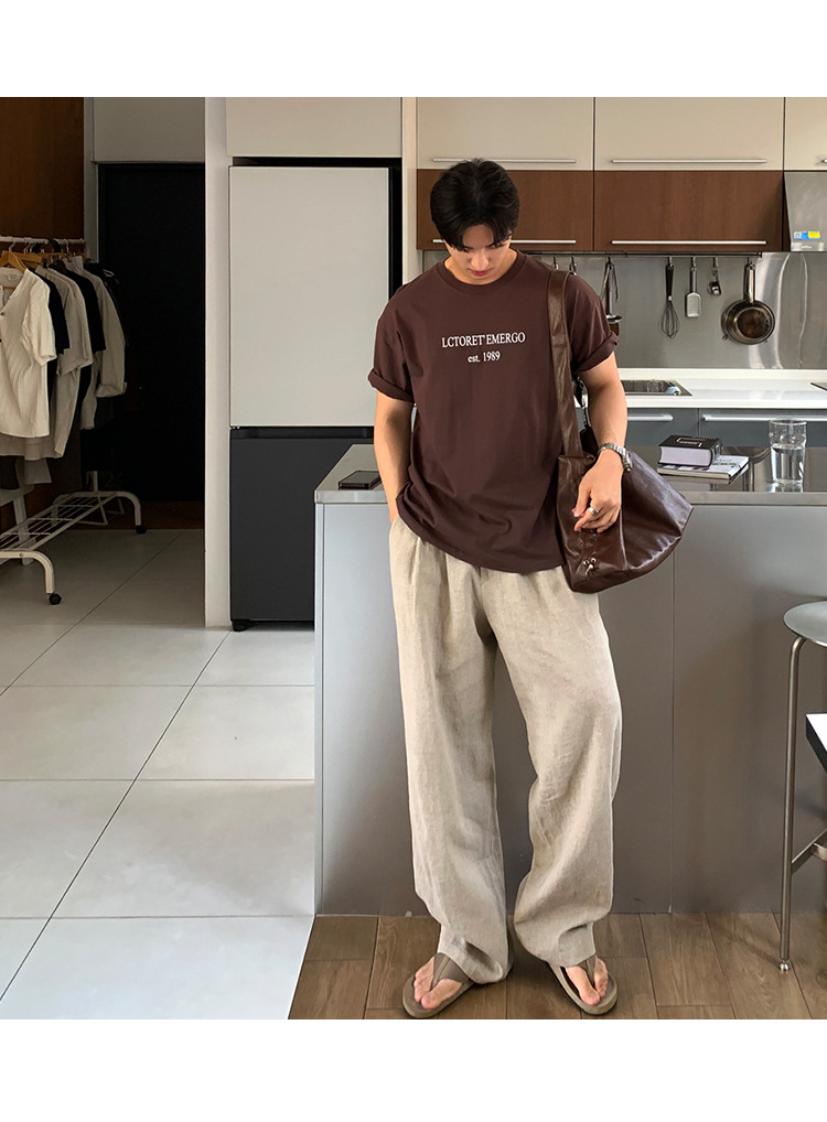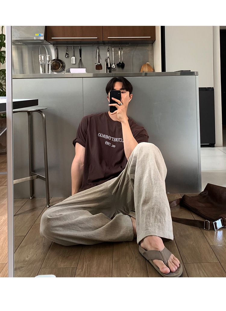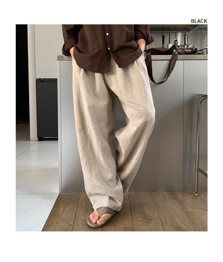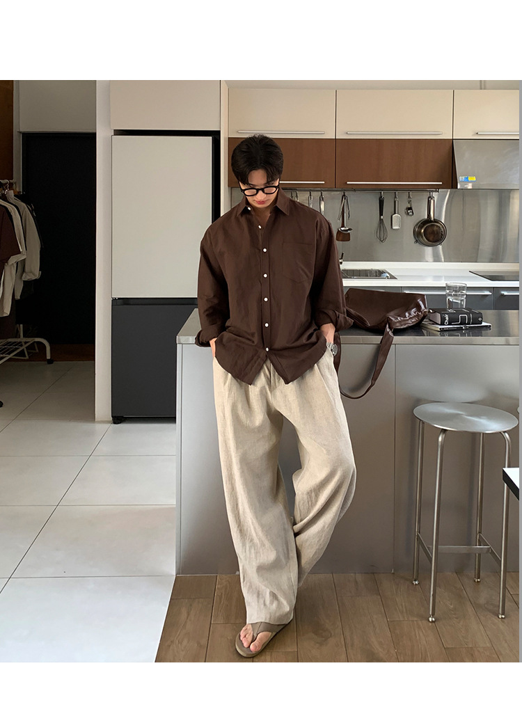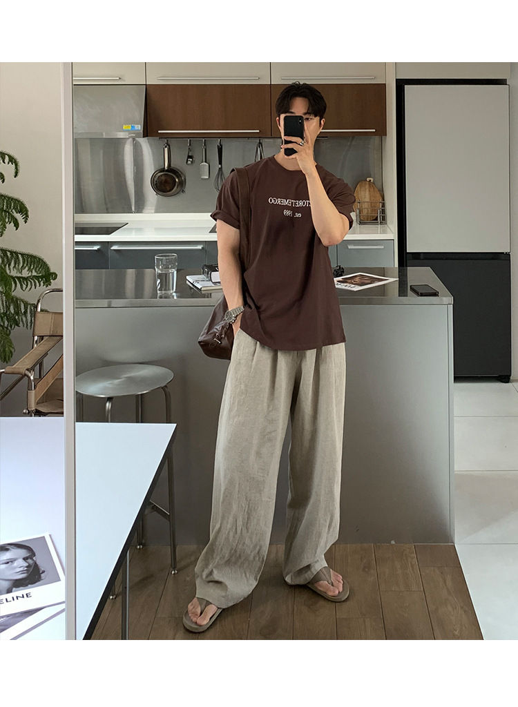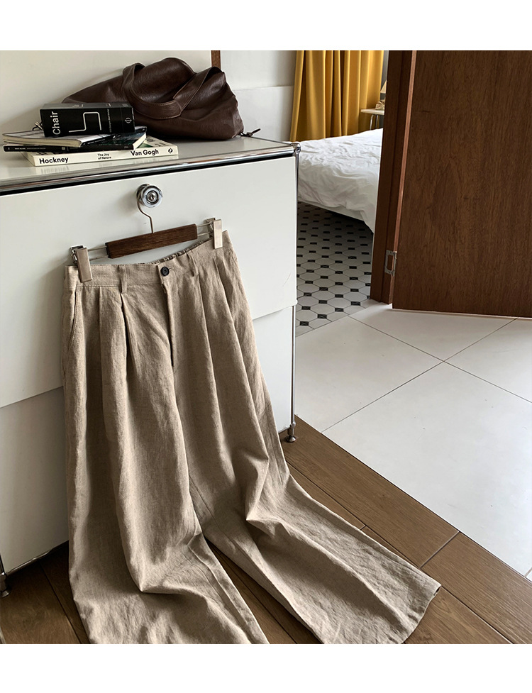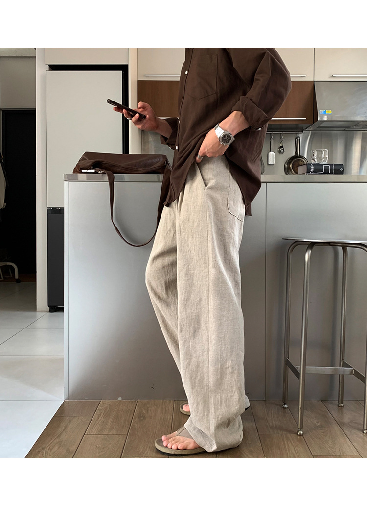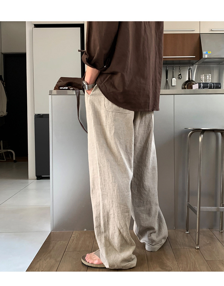 라이트 리넨 캐주얼 바지 남자 2025 년 여름 새로운 한국 스타일 간단한 게으른 스타일 더블 플리츠 와이드 레그 바지