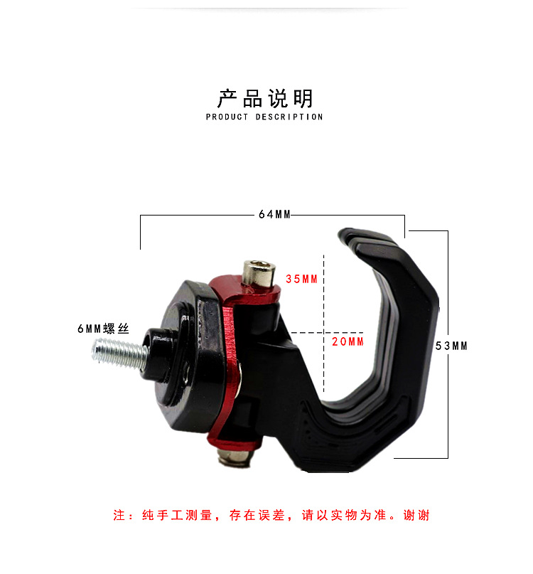 알루미늄 합금/블랙 [내부 개방형 O자형 이중 후크] M6 + 무료 도구