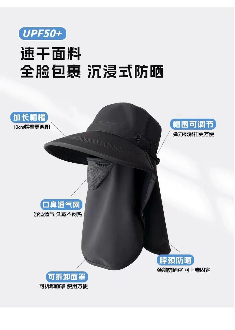 | 帽檐款式 | 弯檐 | 颜色 | 披肩面罩【黑色】, 披肩面罩【米色】, 披肩面罩【深灰】, 披肩面罩【浅灰】, 披肩面罩【粉色】, 护颈渔夫【黑色】, 护颈渔夫【米色】, 护颈渔夫【卡其】, 护颈渔夫【紫色】, 护颈渔夫【粉色】, 超大披肩【黑色】, 超大披肩【米色】, 超大披肩【卡其】, 超大披肩【粉色】, 超大披肩【黄色】, 草披肩【黑色】, 草披肩【米色】, 草披肩【卡其】, 套头冰丝【黑色】, 套头冰丝【深灰】, 套头冰丝【浅灰】, 套头冰丝【卡其】, 套头冰丝【粉色】 |