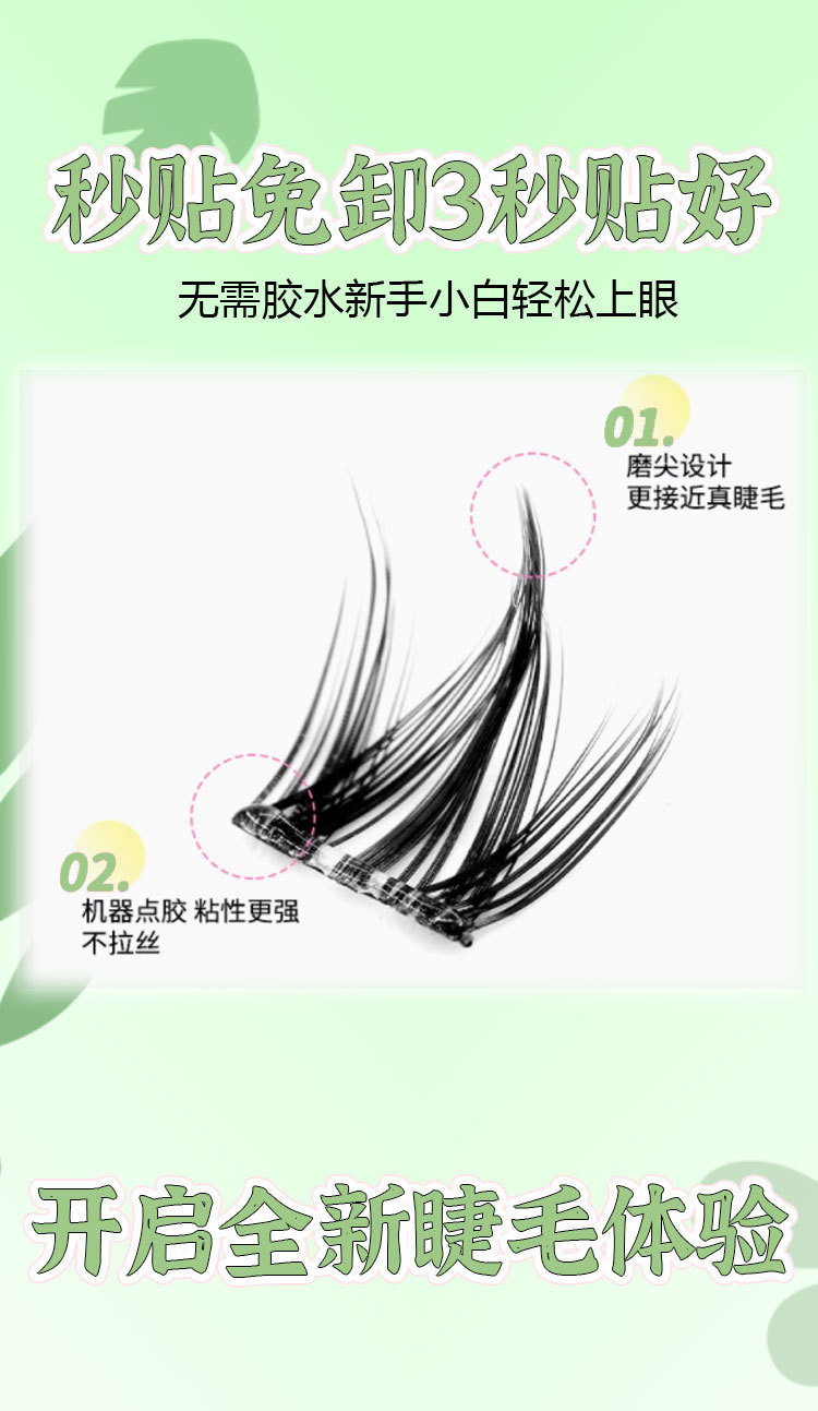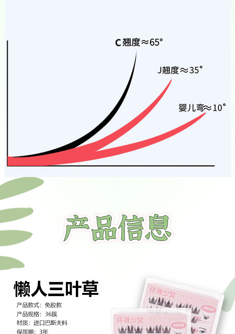 | 规格 | 猫爪女团, 三叶草, 5D婴儿弯, 白月光, 冰山花海, 大花卷, 富家千金, 山茶花, 双尖太阳花, 淘气精灵, 天山雪莲, 小雏菊, 鱼尾, 小火苗下睫毛, 无梗婴儿弯, 无梗鸟啾啾, 无梗三叶草, 无梗山茶花, 无梗双尖麦穗, 无梗双尖太阳花, 无梗苏妲己, 无梗鱼尾, 免胶十排山茶花, 免胶十排苏妲己, 免胶十排双尖太阳花, 免胶十排富家千金, 免胶十排双尖麦穗, 免胶十排向日葵, 免胶十排大花卷, 免胶十排大公主, 免胶十排三部曲+小火苗, 免胶十排太阳花+小火苗, 非免胶十排猫精灵, 非免胶十排大花卷, 非免胶十排萝莉, 非免胶十排猫爪, 非免胶十排女团, 非免胶十排双尖麦穗, 非免胶十排苏妲己, 非免胶十排太阳花, 非免胶十排小火苗 | 是否跨境出口专供货源 | 否 |