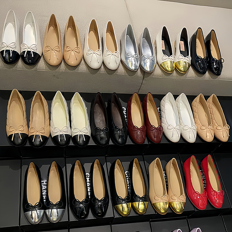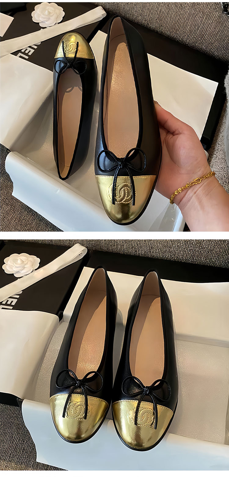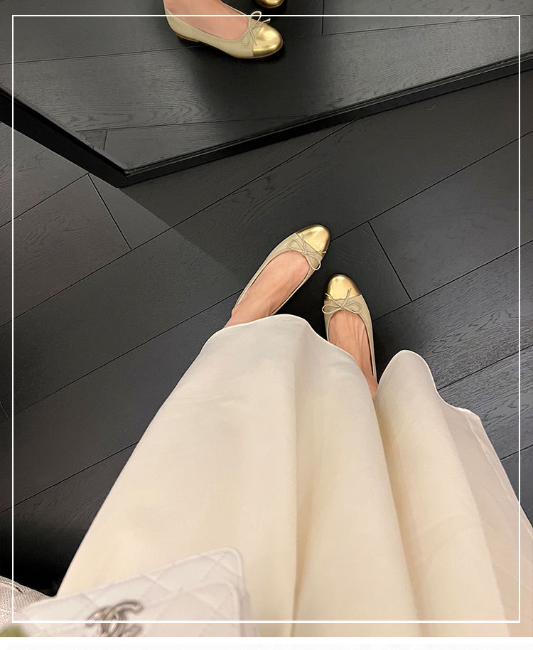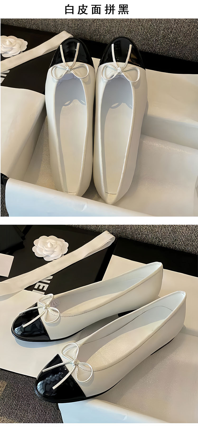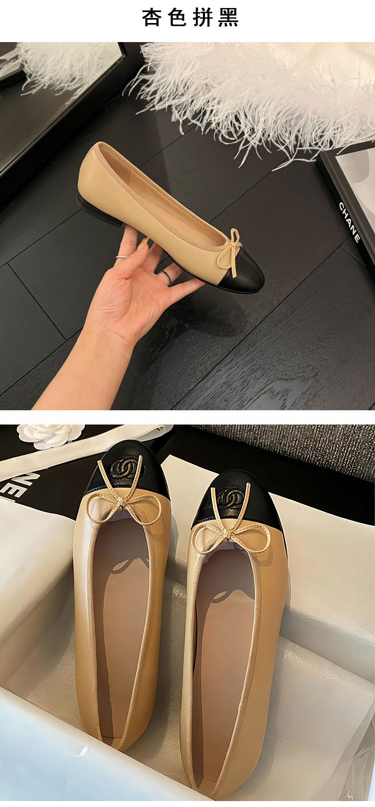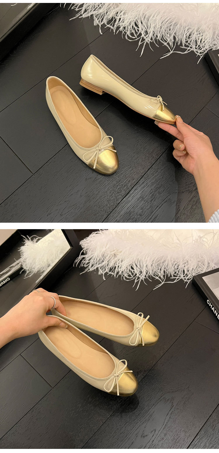 2025년 신상 Xiaoxiangfeng 여성용 정품 가죽 펌프스 라운드 토 신발, 여성용 다용도 통근 컬러 블록 보우 발레 슈즈