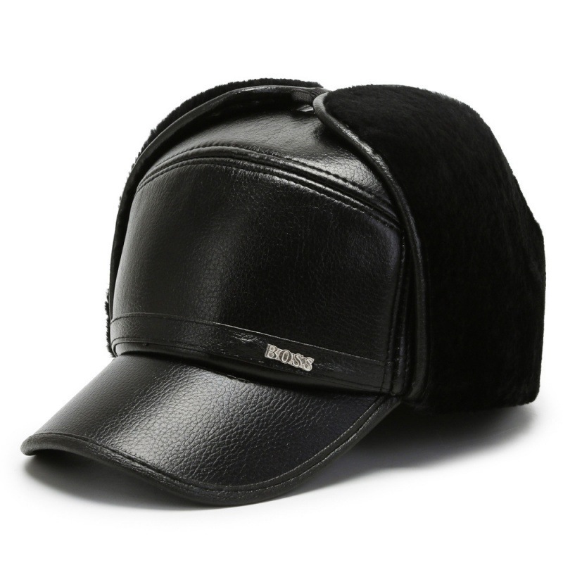 중년 및 노년층을 위한 새로운 야외 벨벳 따뜻한 귀 보호 면 겨울 가죽 모자 대외 무역 도매 모자 짧은 챙 캐주얼 레이펑 모자