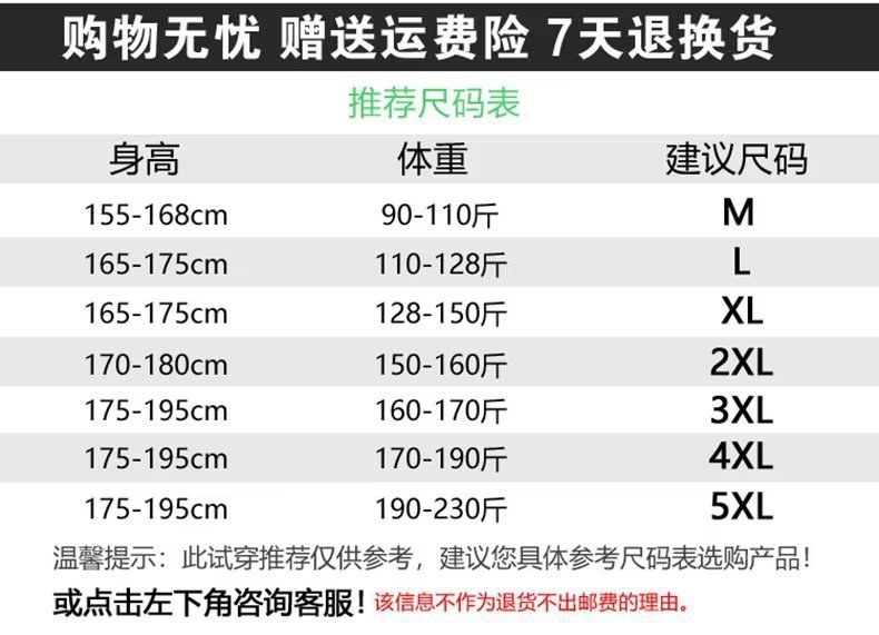 | 颜色 | 黑色, 深灰, 浅灰 | 尺码 | M, L, XL, 2XL, 3XL, 4XL, 5XL |