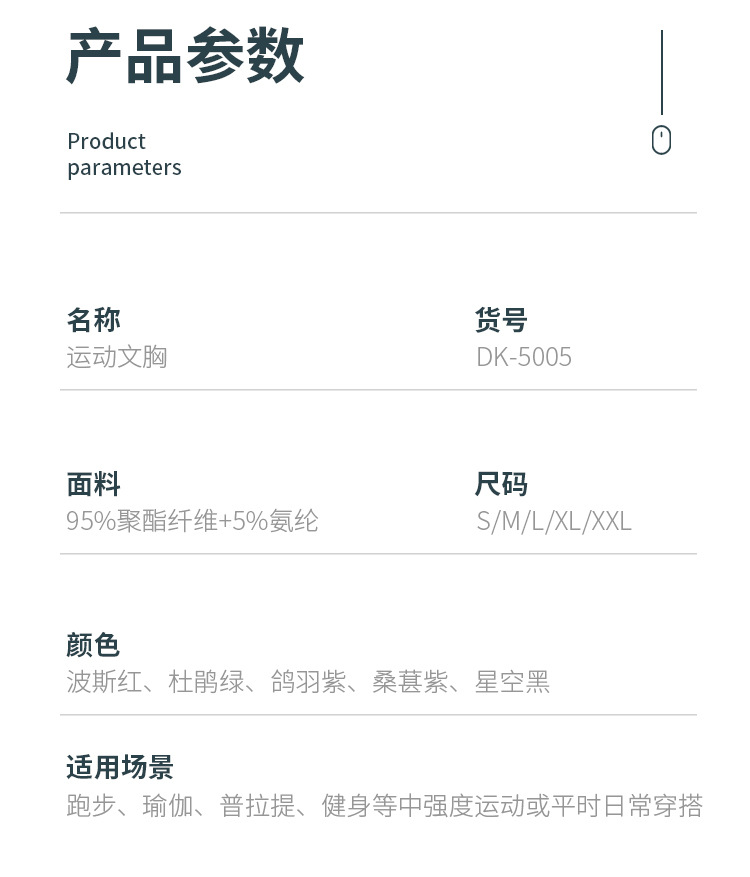 | 材质成分 | 95%聚酯纤维+5%氨纶 | 颜色 | DK-5005鸽羽紫, DK-5005桑葚紫, DK-5005波斯红, DK-5005星空黑, DK-5005杜鹃绿 |