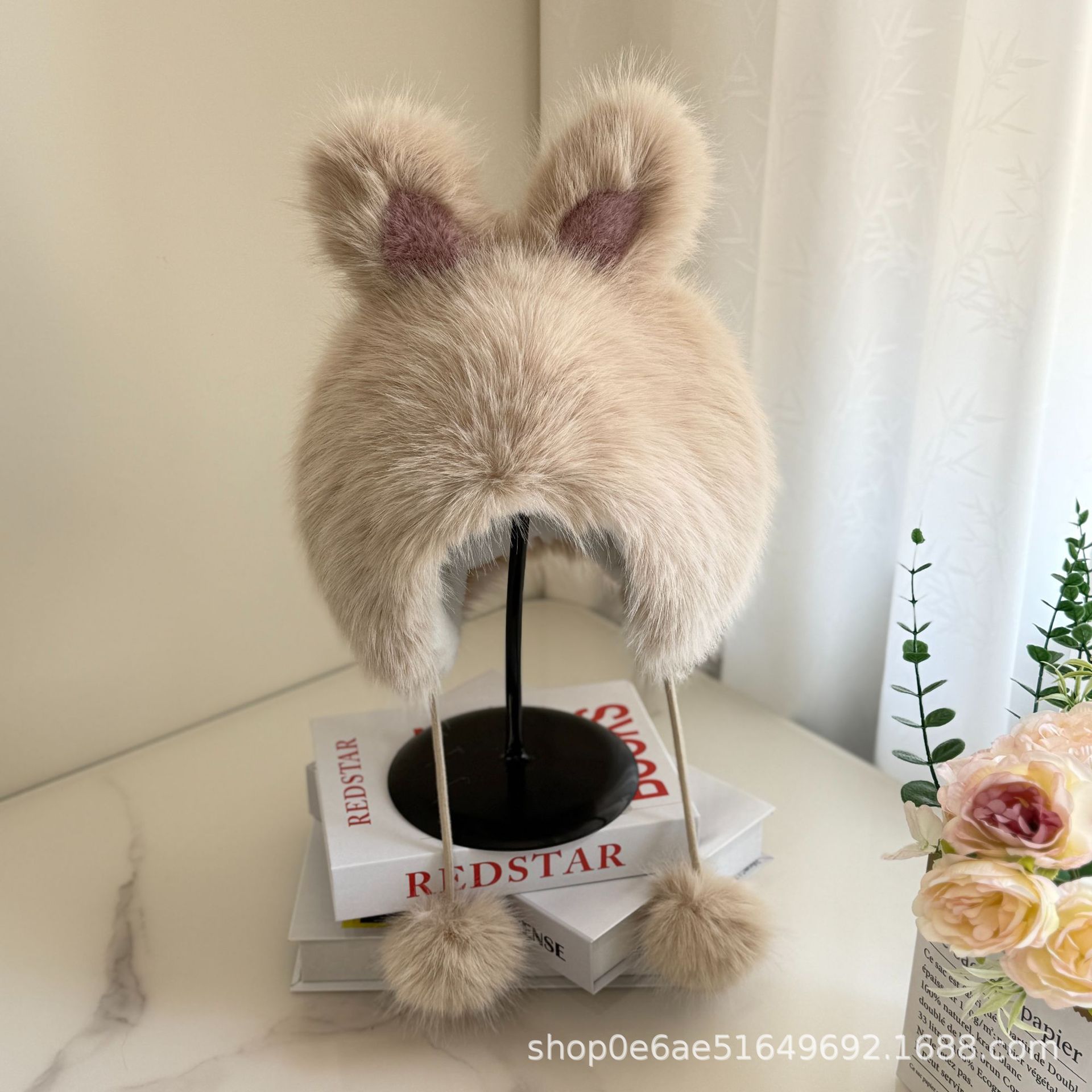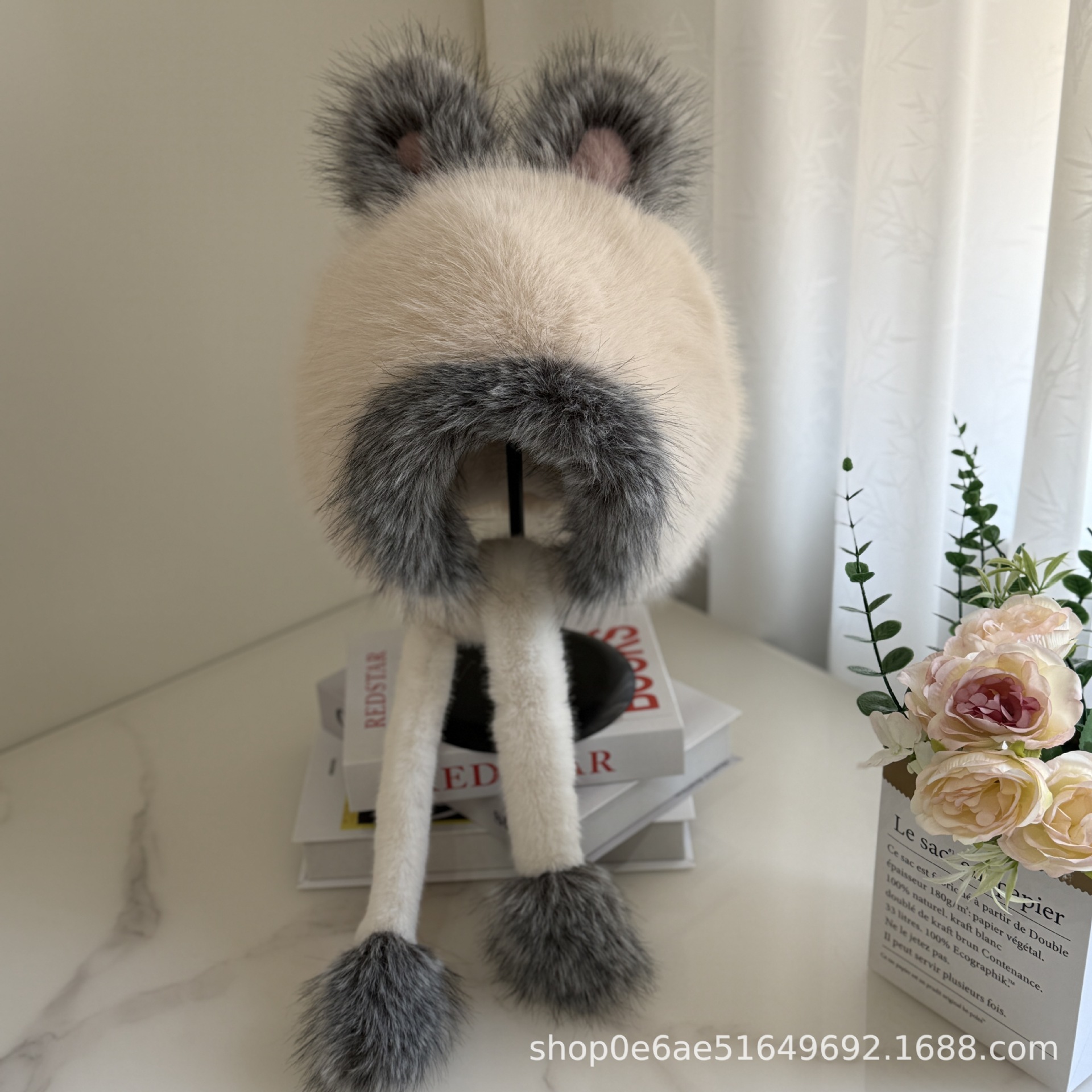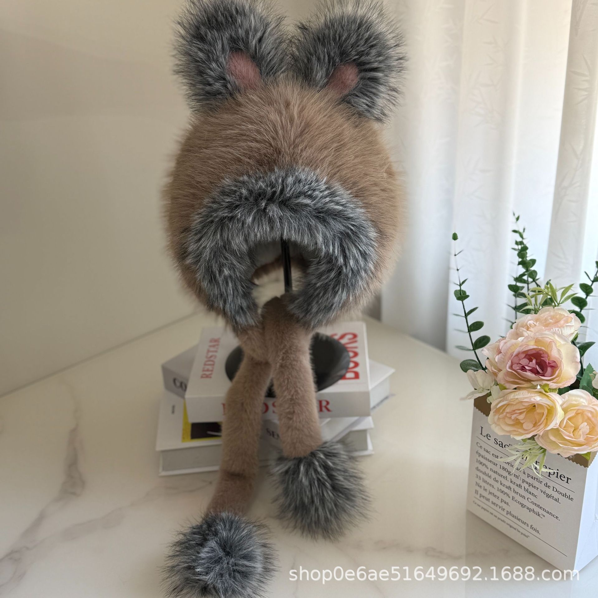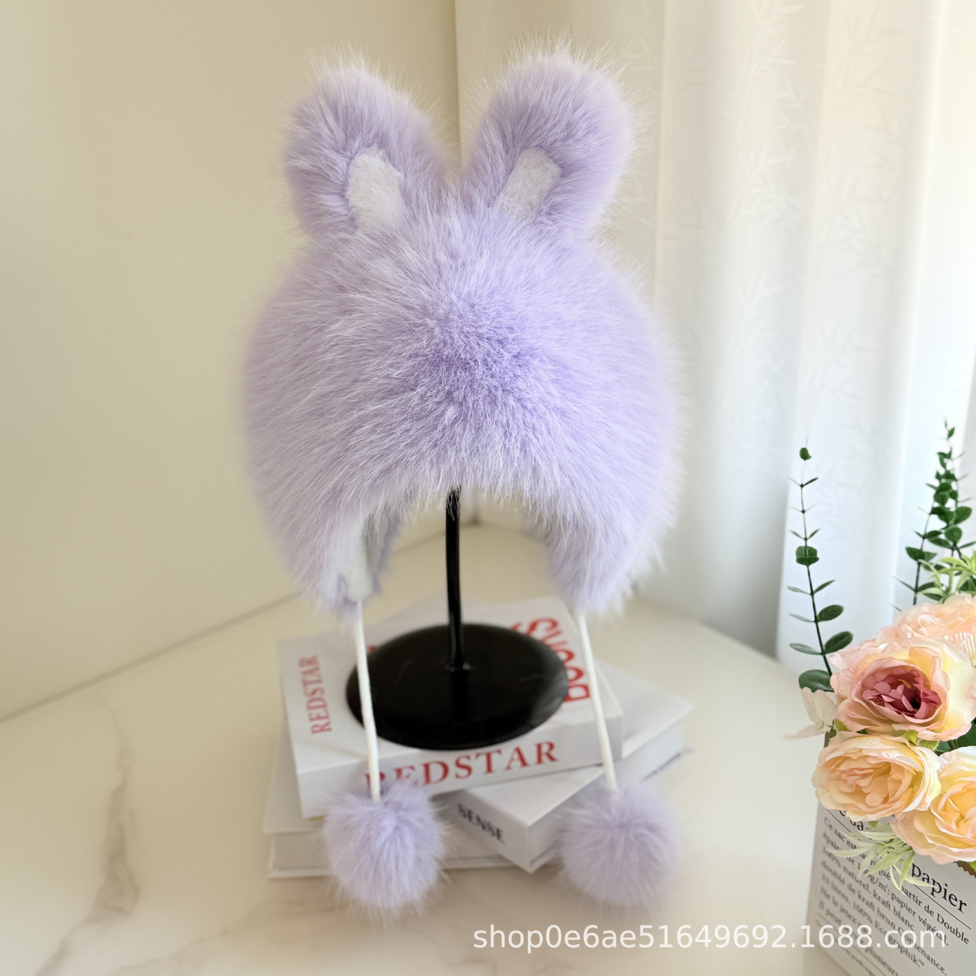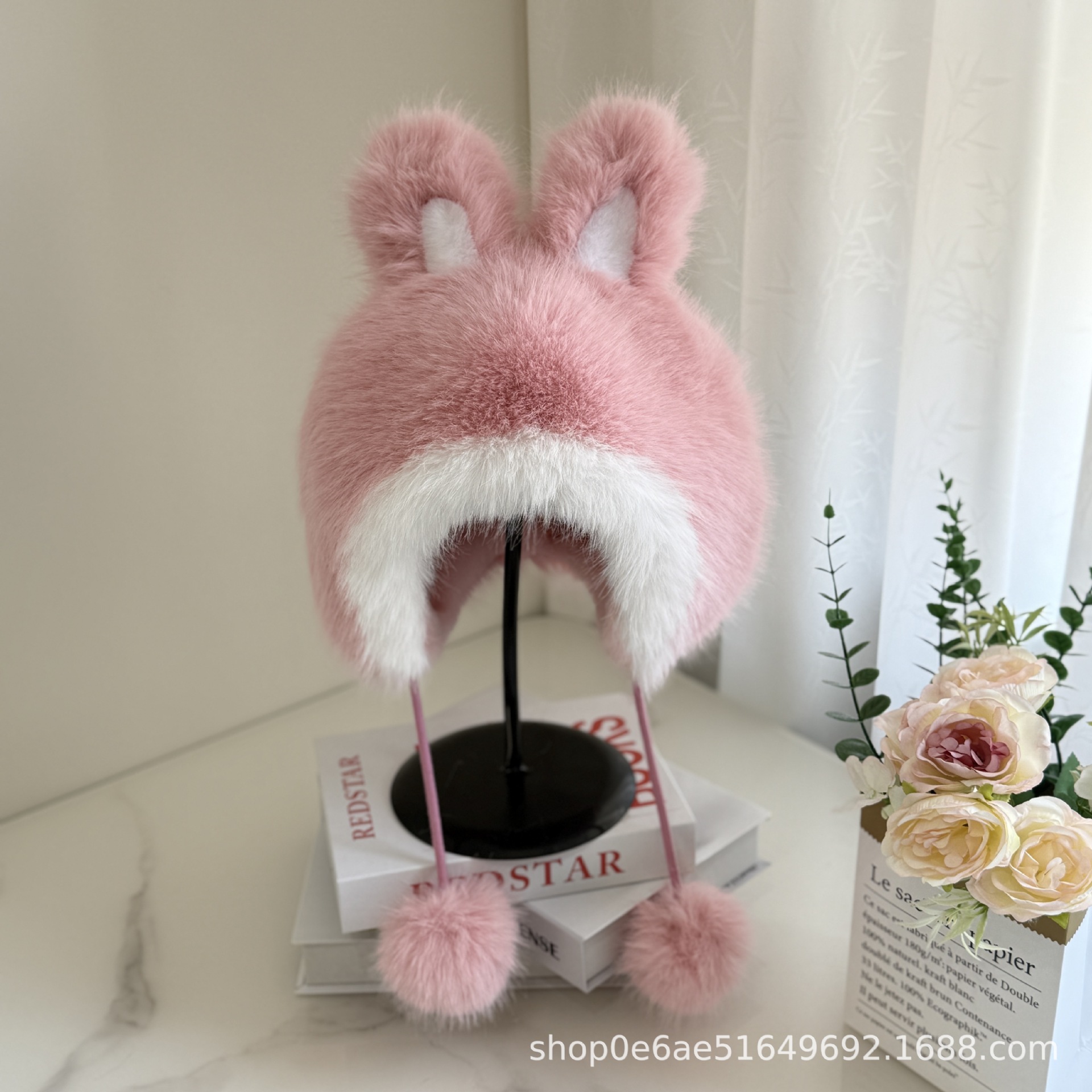 여성용 모조 여우 모피 야오야오 토끼 귀 보호 모자, 큰 머리 사이즈, 아동용 모피 모자, 가을 겨울용 두꺼운 따뜻한 성인용 모자