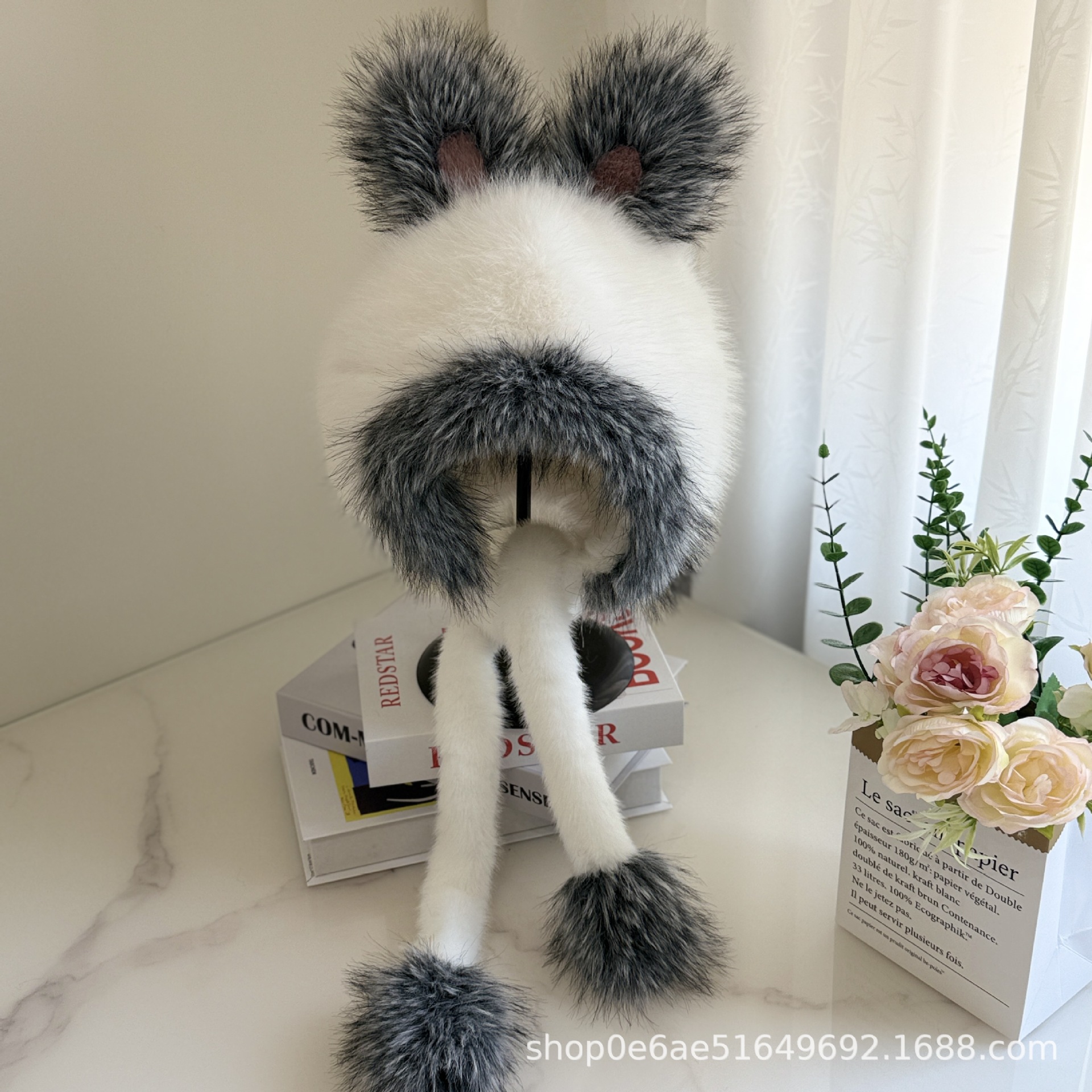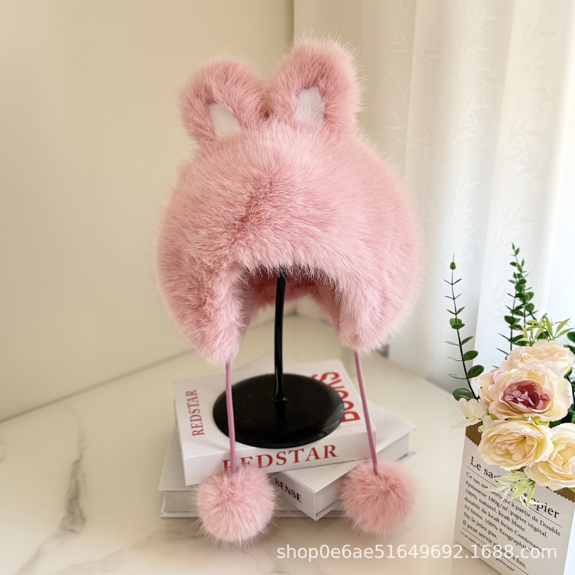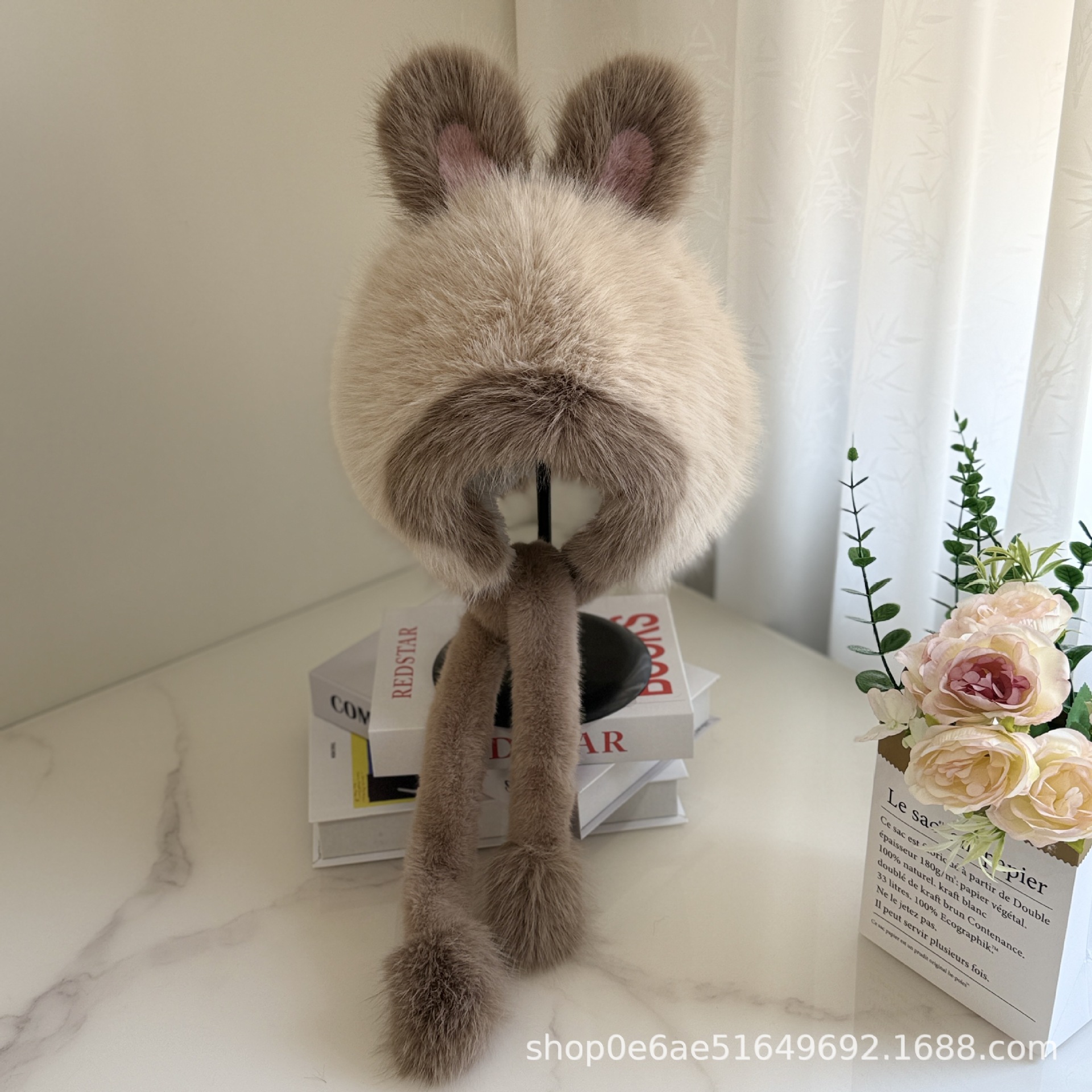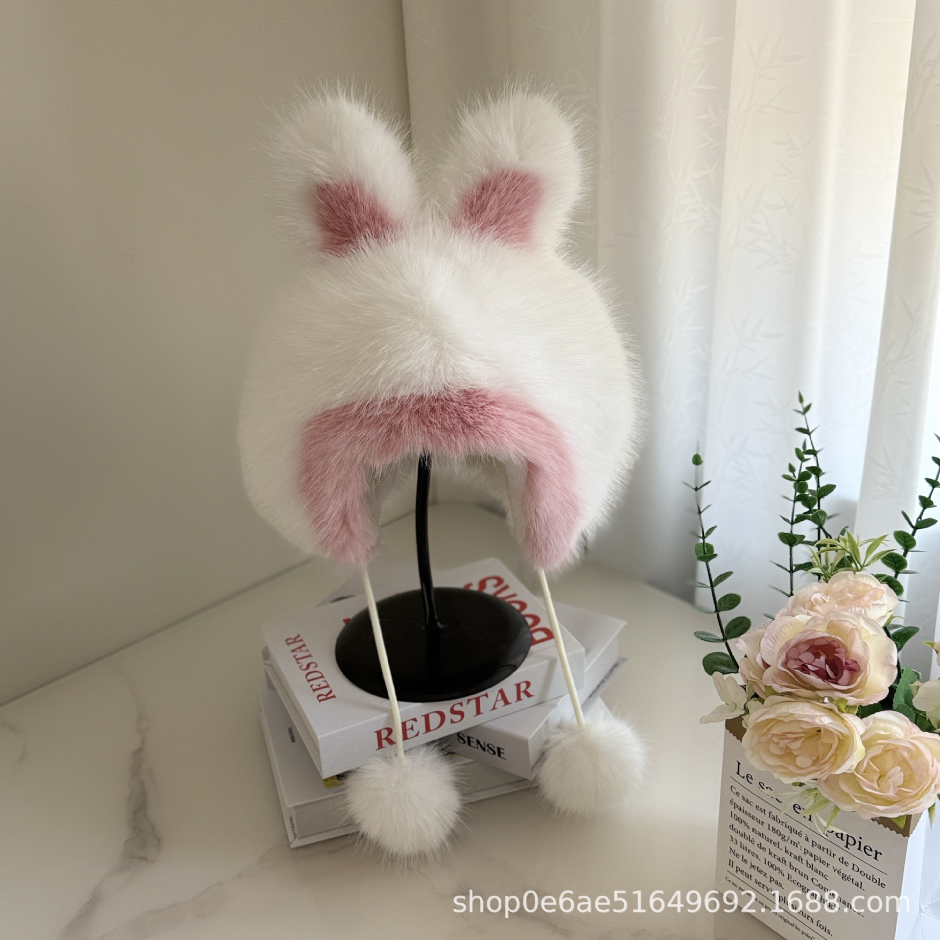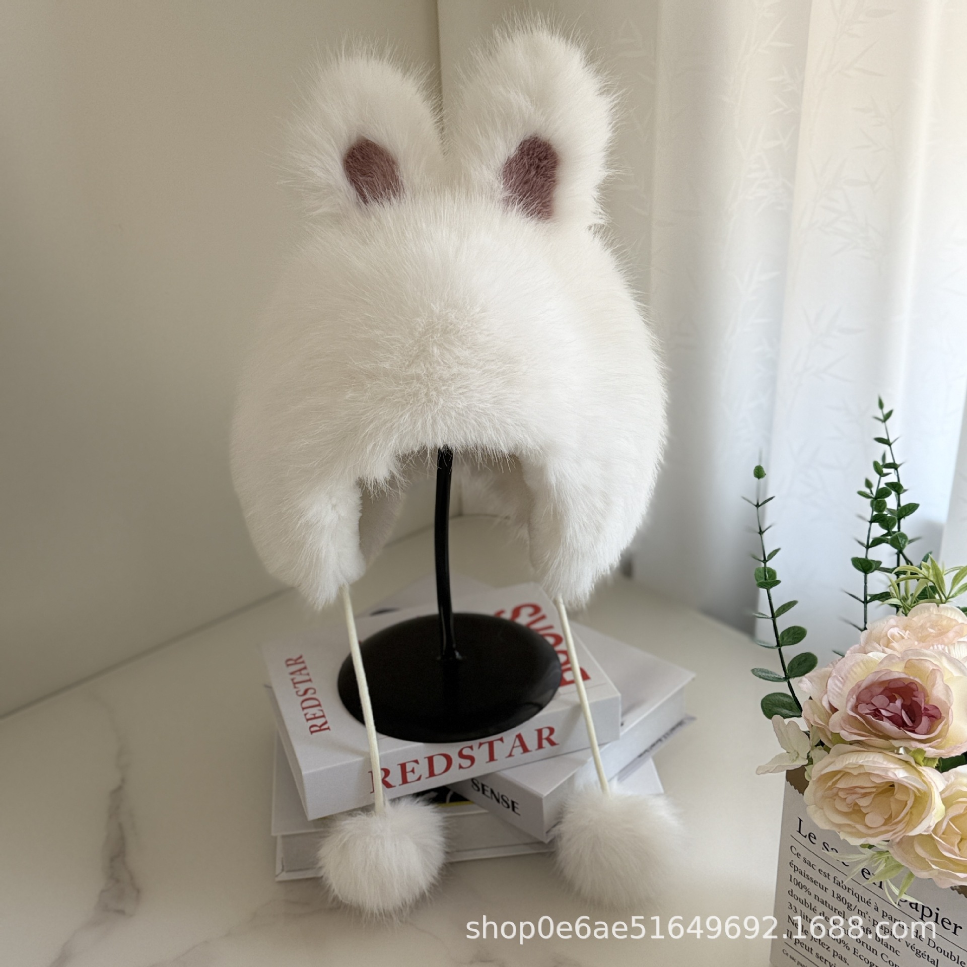 여성용 모조 여우 모피 야오야오 토끼 귀 보호 모자, 큰 머리 사이즈, 아동용 모피 모자, 가을 겨울용 두꺼운 따뜻한 성인용 모자