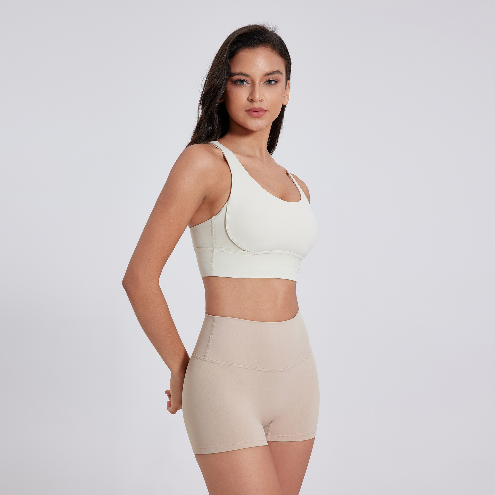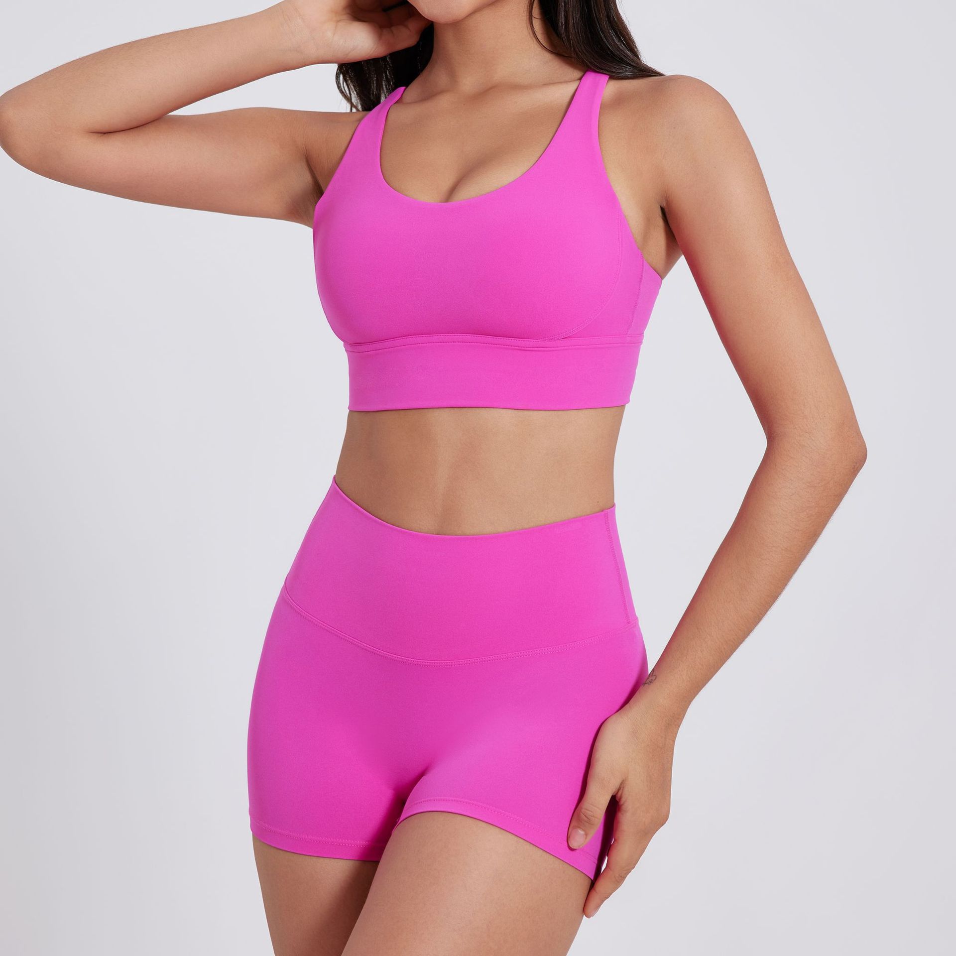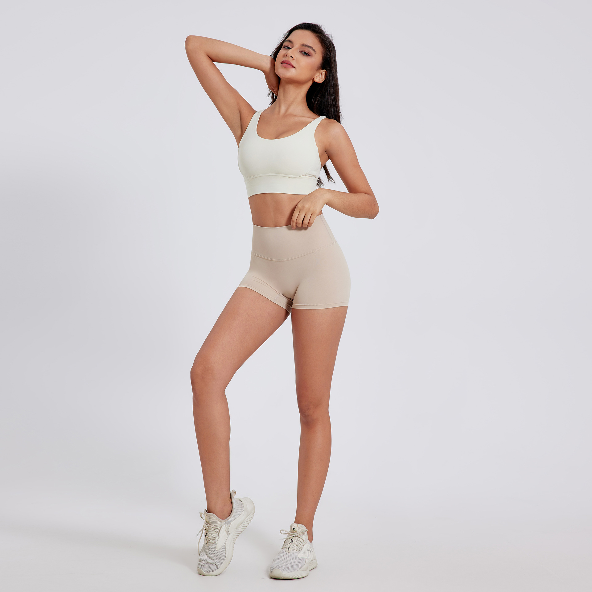 유럽과 미국의 샌딩 타이트 요가 반바지 여성의 높은 허리 타이트 복부 피트니스 바지 복숭아 엉덩이 리프팅 러닝 스포츠 3 점 바지