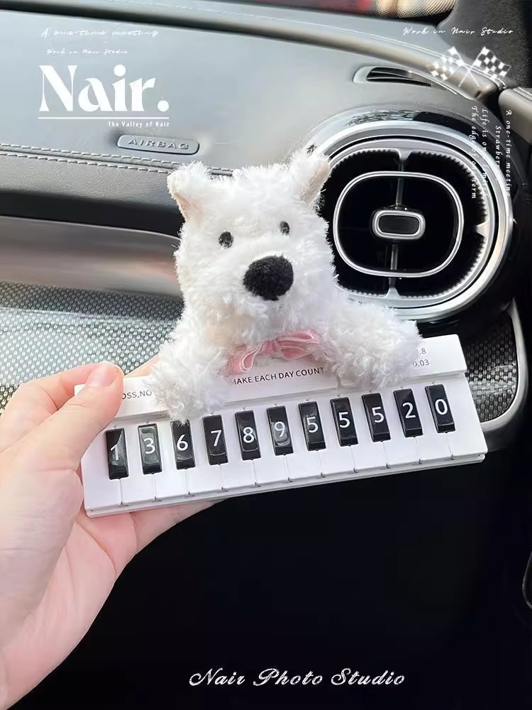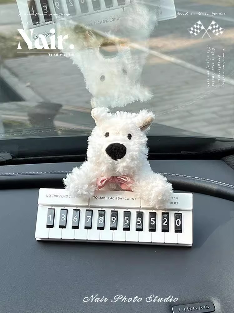 자동차 임시 주차 표시, 귀여운 웨스트 하이랜드 피아노 주차 표시, 자동차 전화 번호판, 차량 이동