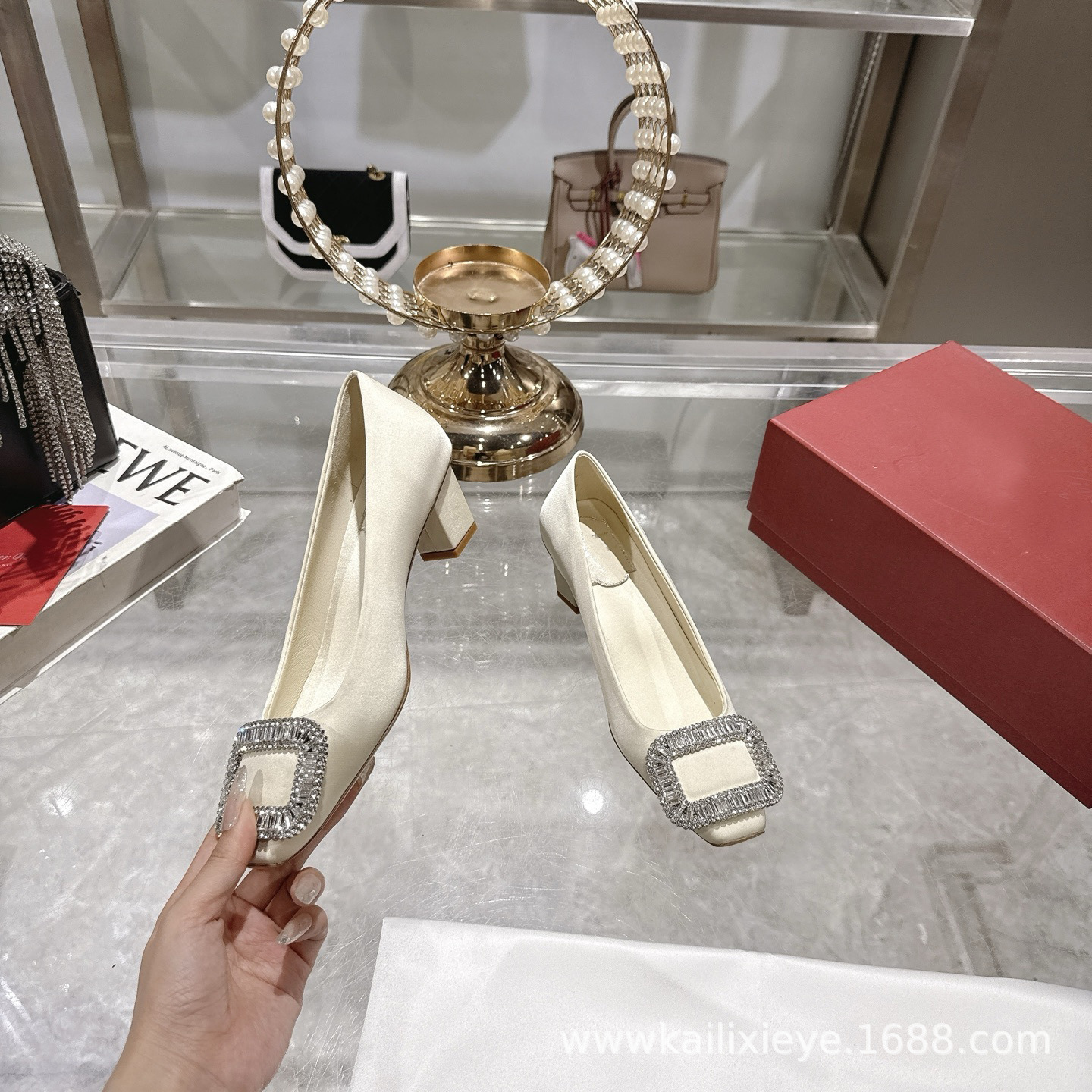 面料内𥚃一致进口真丝. 捷克超闪水钻方扣. 跟高2.5cm 4.5cm 2种跟高 💕真皮大底.35-39正码(34 40定做)