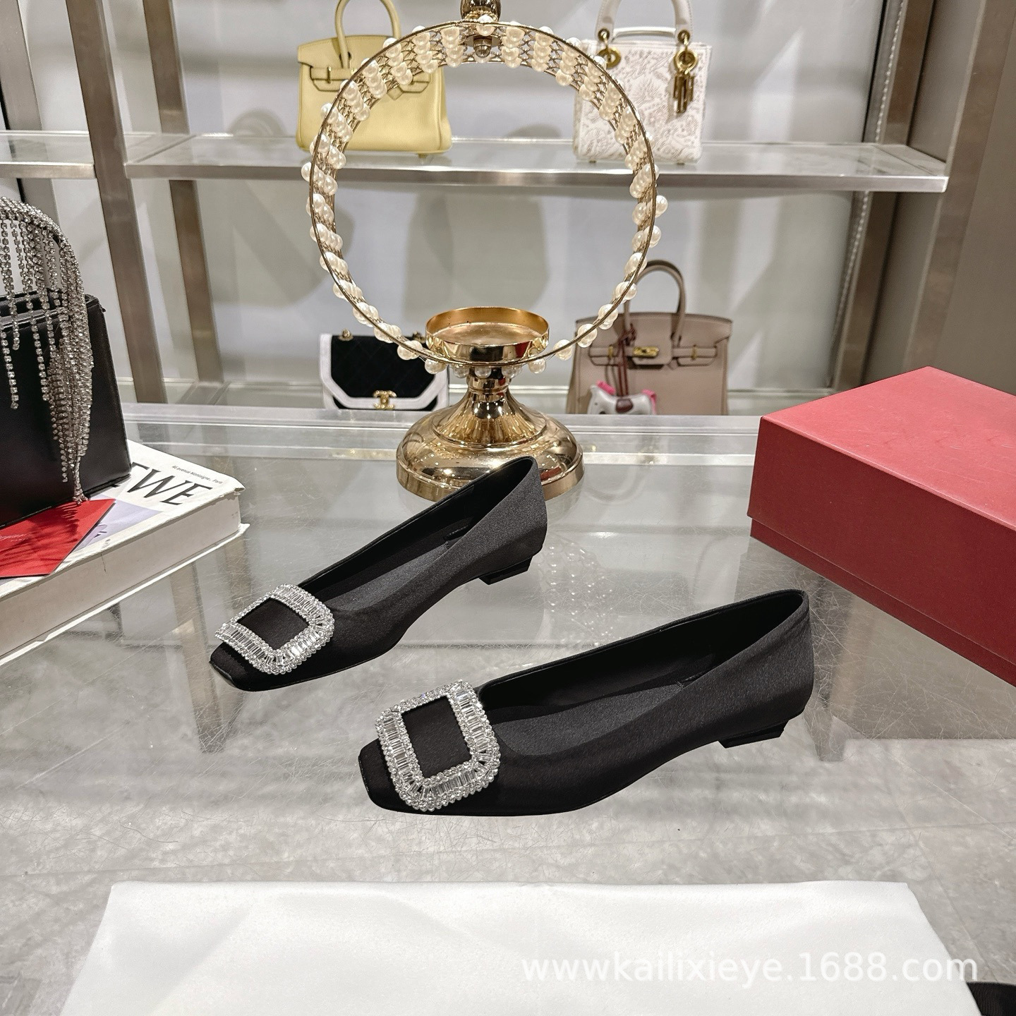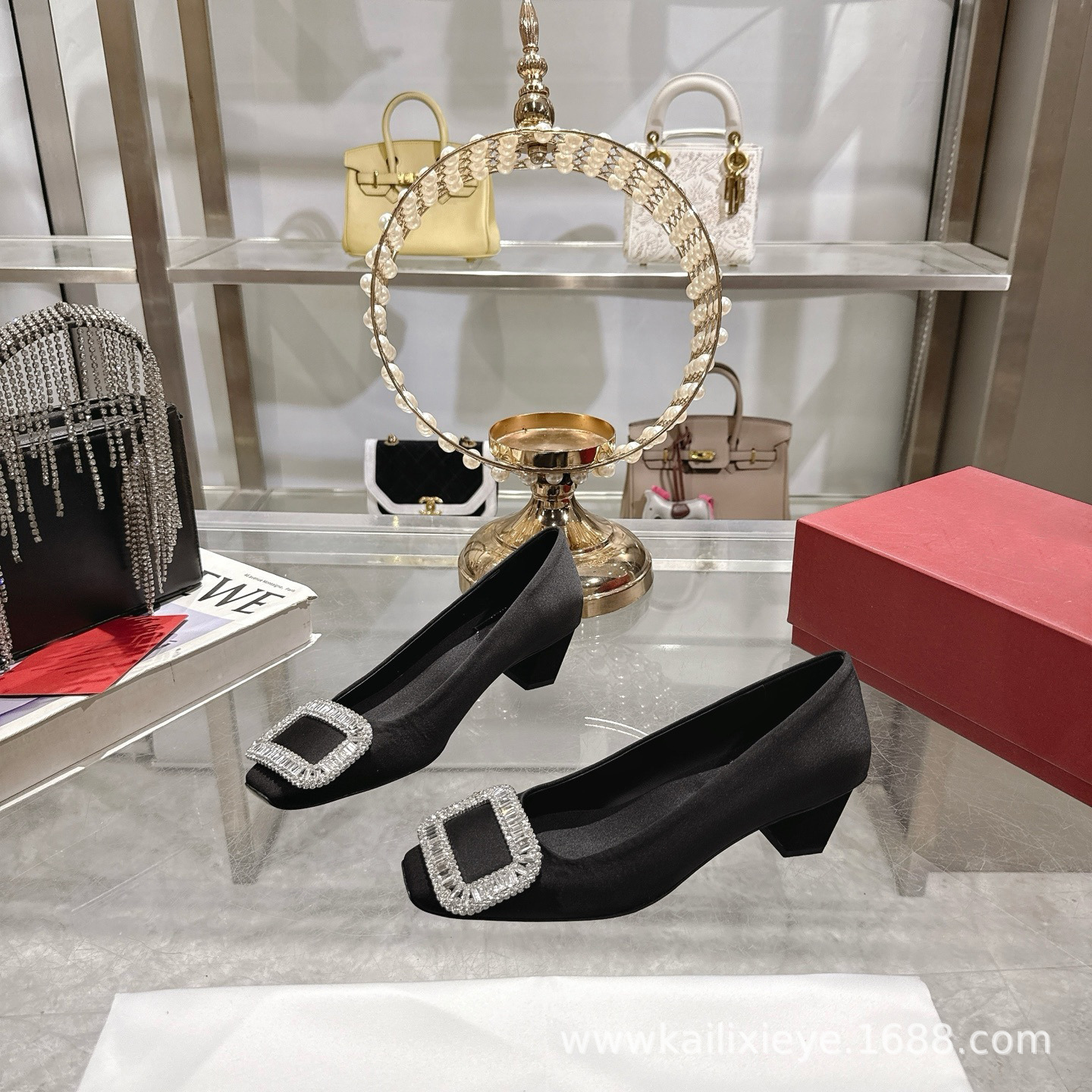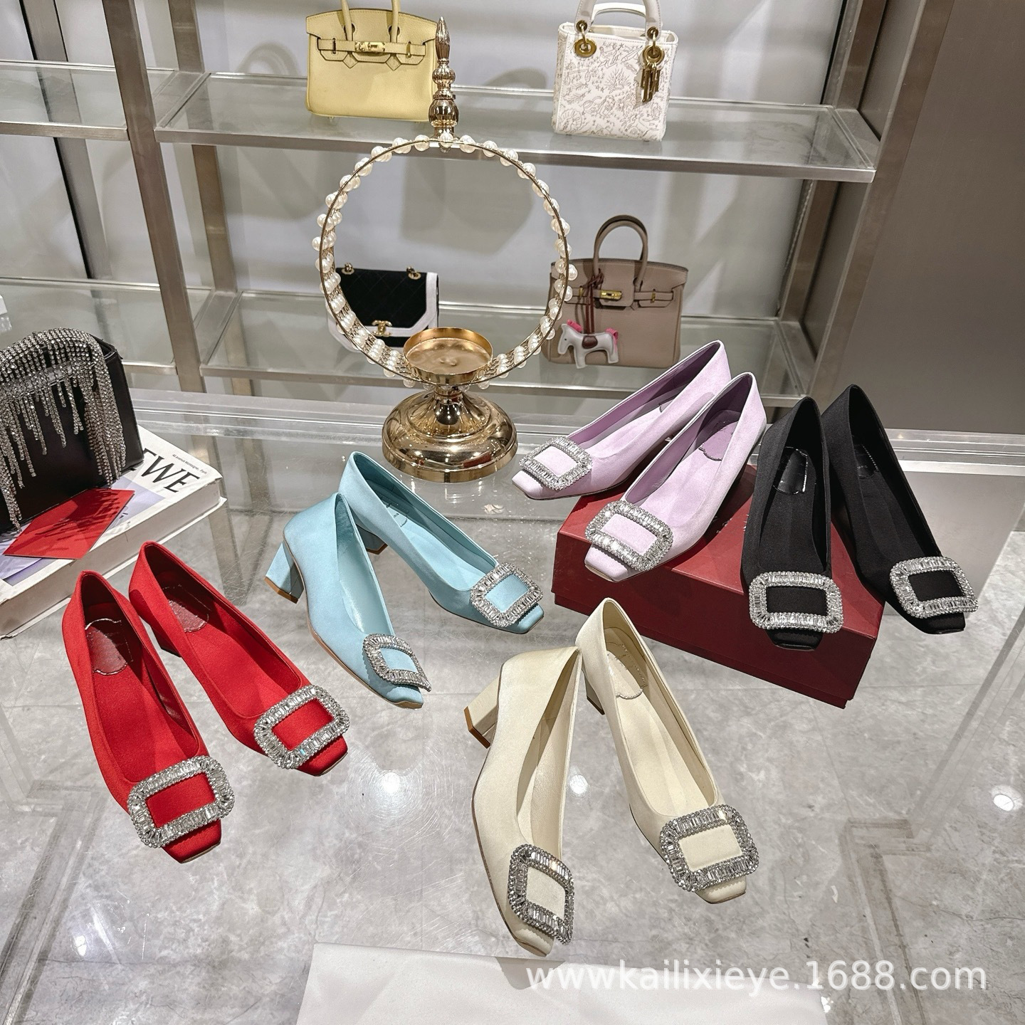 🆕本款单鞋以丝缎匠艺制成. 辉映品牌水钻.方扣美学亭亭而立. 尽显R家单鞋优美雅致. 🎫水钻镶嵌饰扣之上. 法式设计映衬质感精美曲线.🆕 定格灵感进发时刻