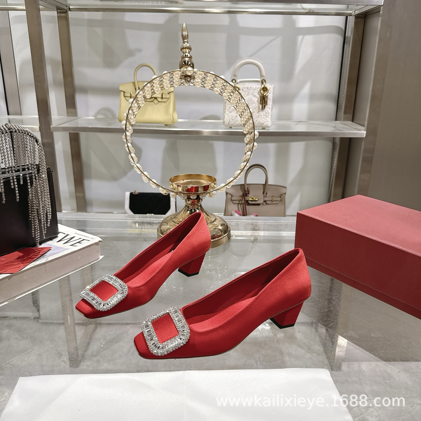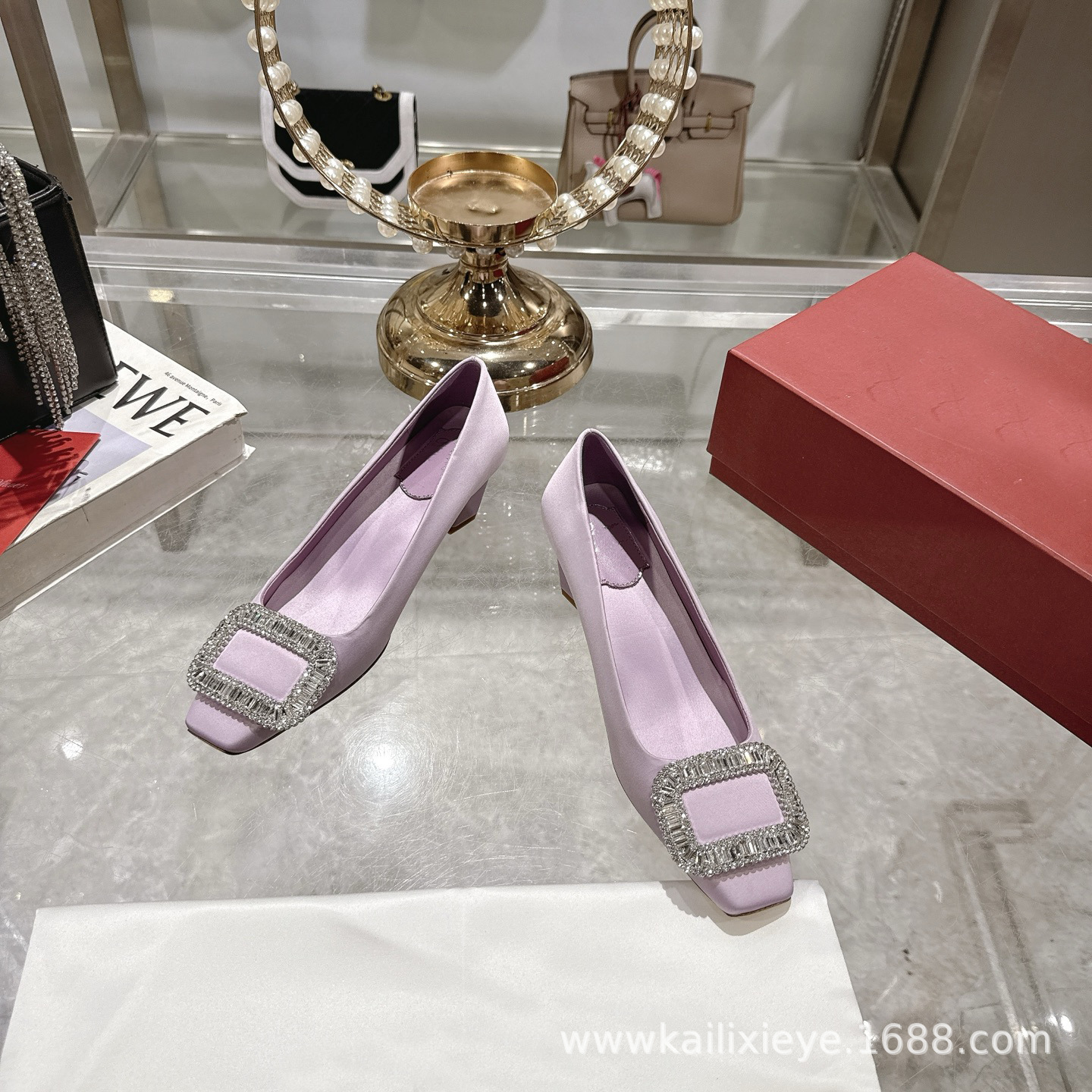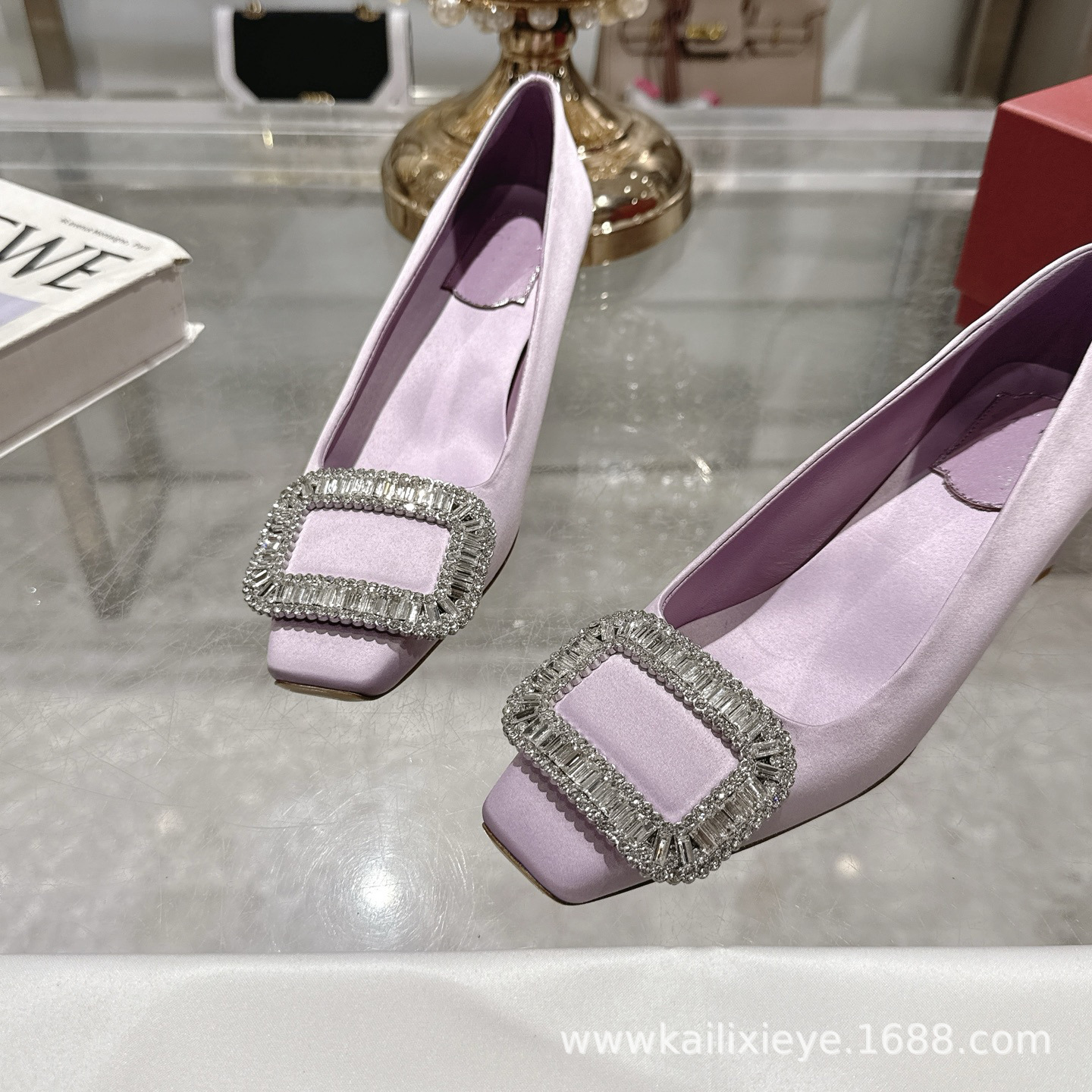 🆕本款单鞋以丝缎匠艺制成. 辉映品牌水钻.方扣美学亭亭而立. 尽显R家单鞋优美雅致. 🎫水钻镶嵌饰扣之上. 法式设计映衬质感精美曲线.🆕 定格灵感进发时刻