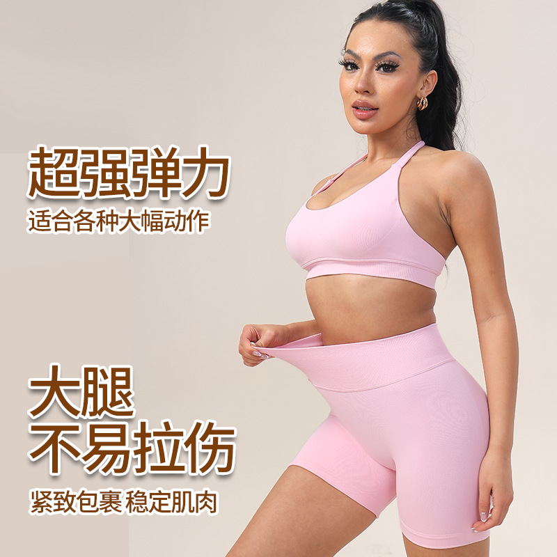 DFYNE 크로스보더 타이트한 하이웨이스트 힙업 요가팬츠, 심리스 통기성 속건 누드 스포츠 피트니스 3점 반바지