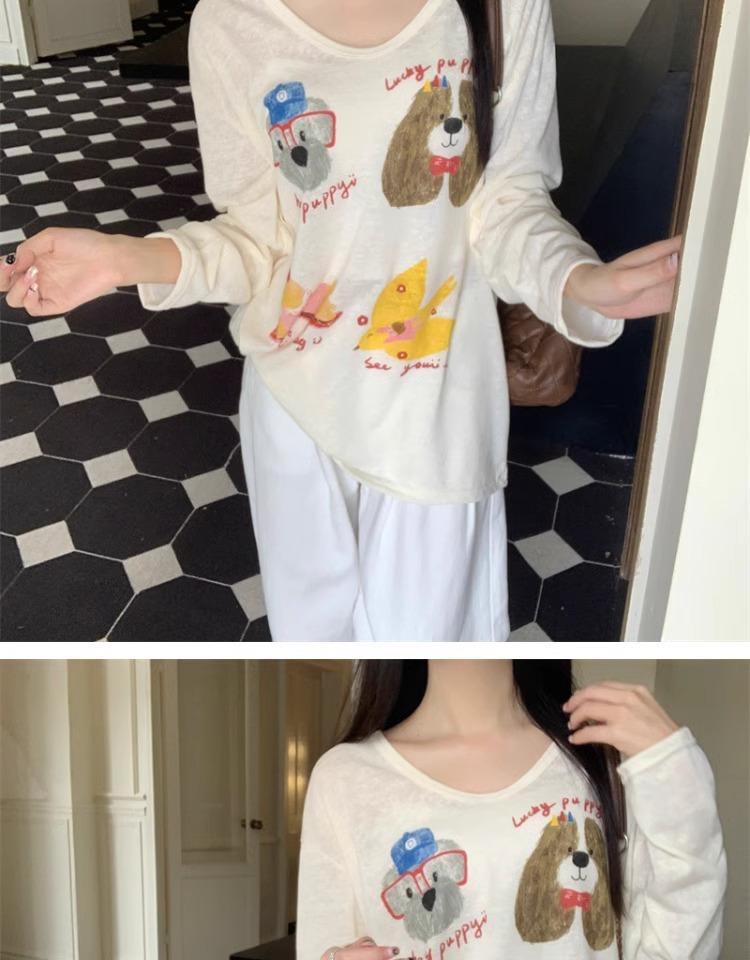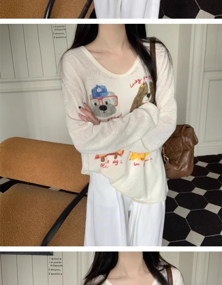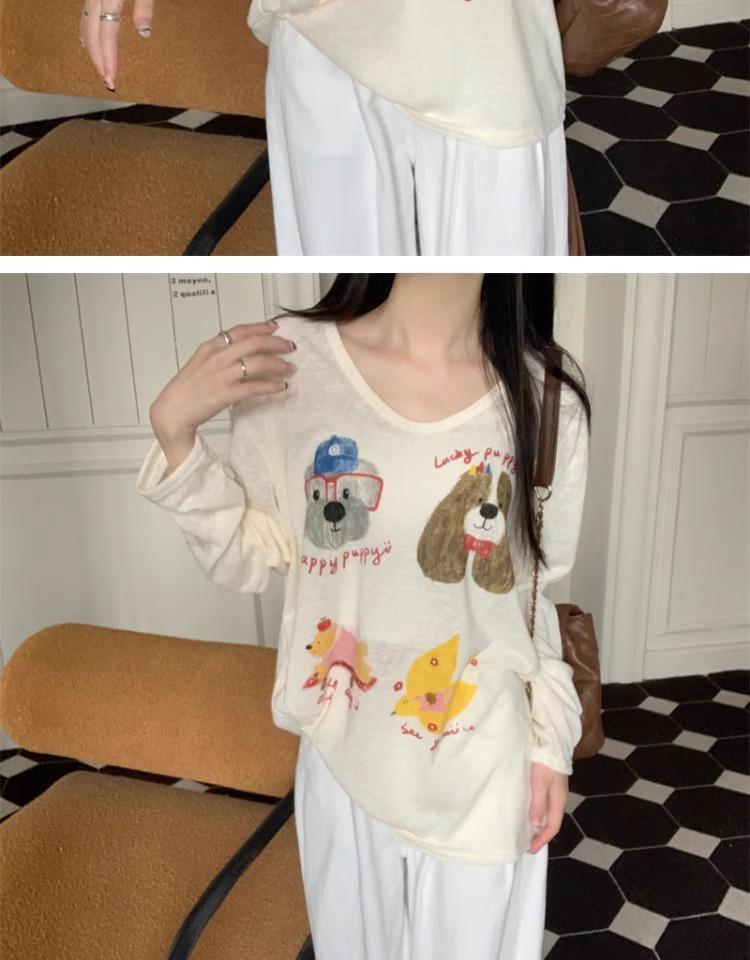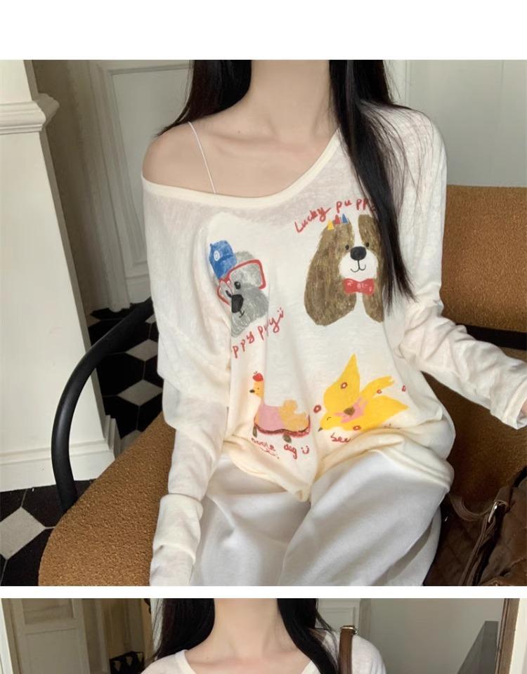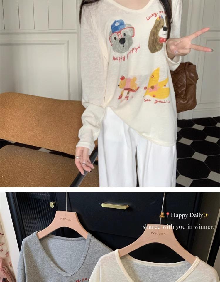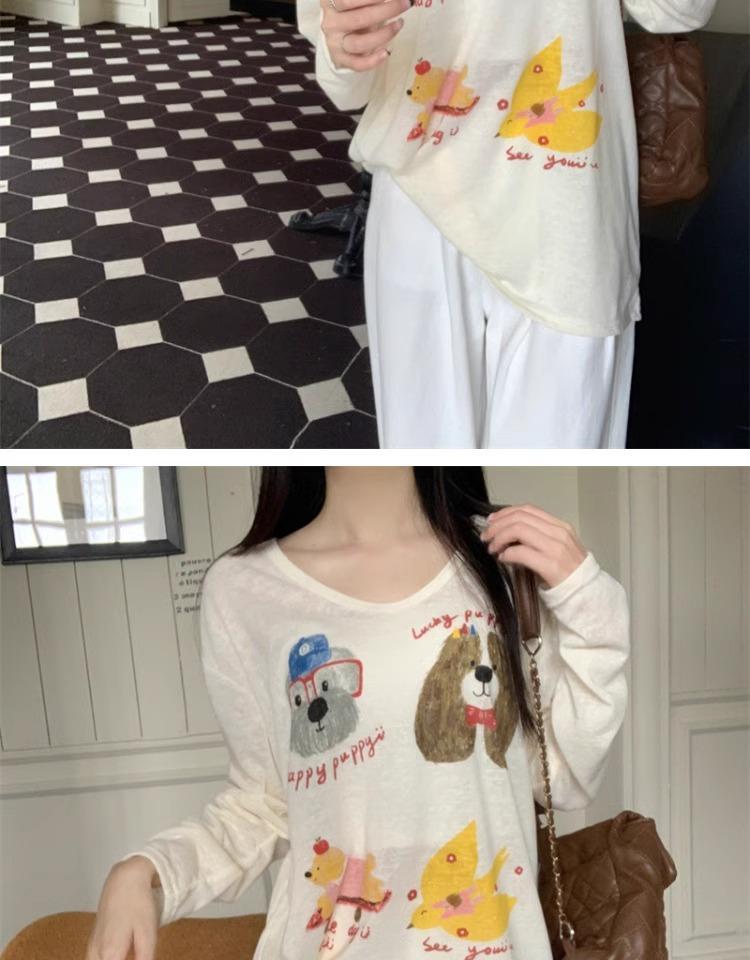 2025 봄과 여름 뉴 에이지 감소 크리에이티브 인쇄 느슨한 긴팔 태양 블라우스 여성의 게으르고 편안한 기본 탑