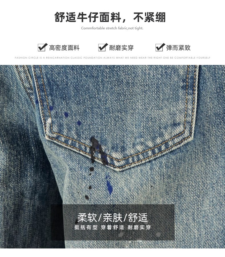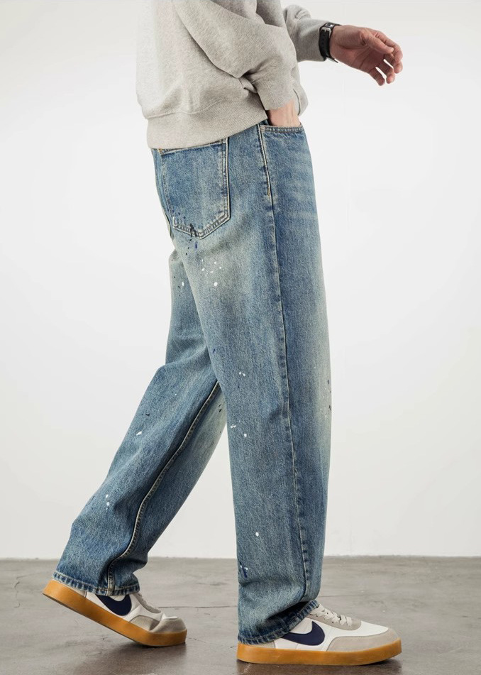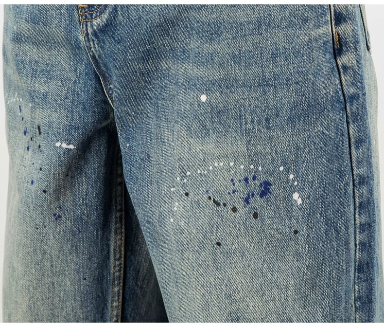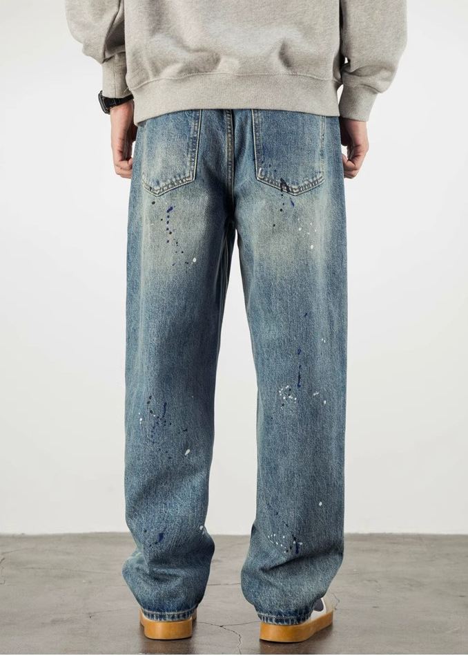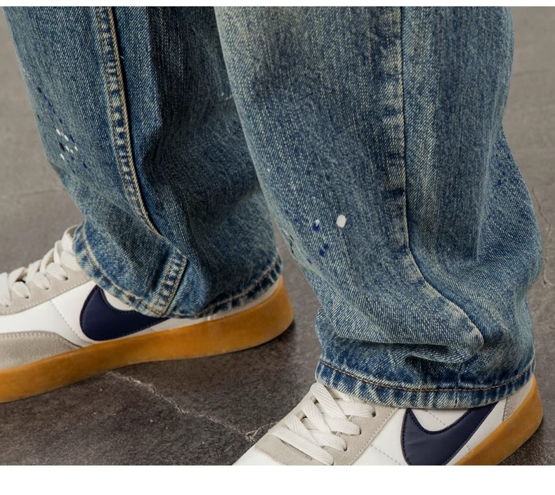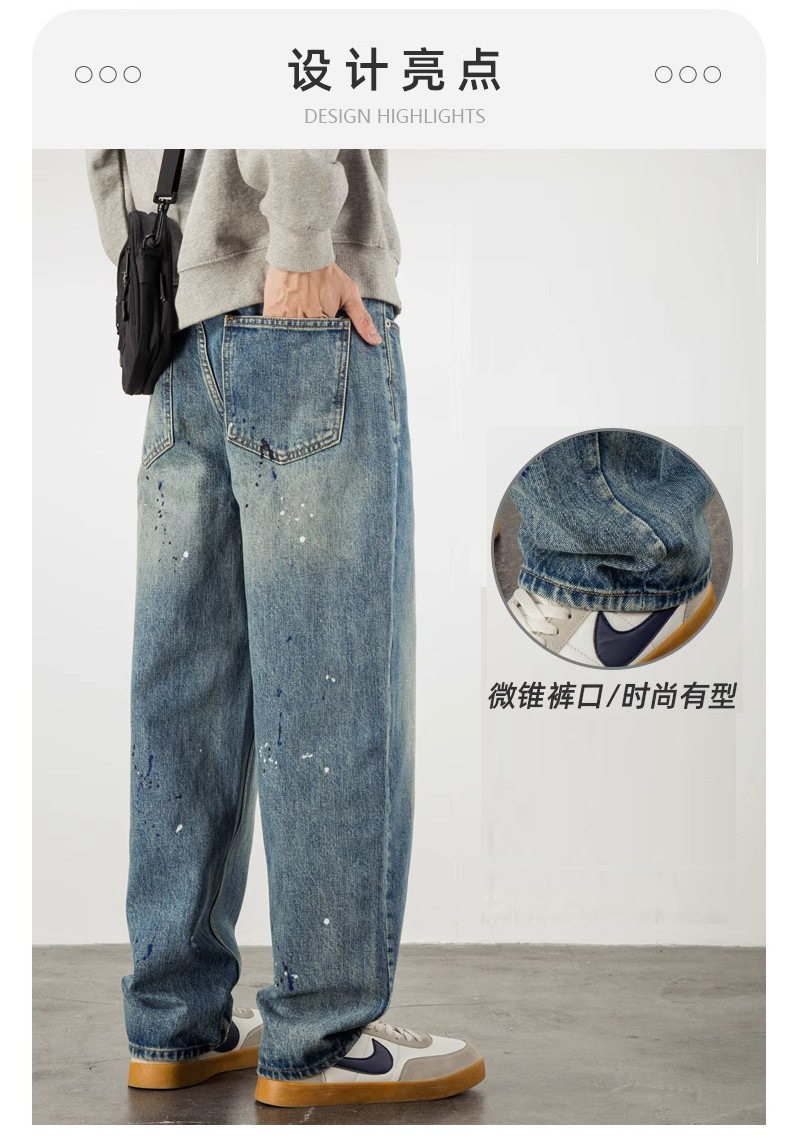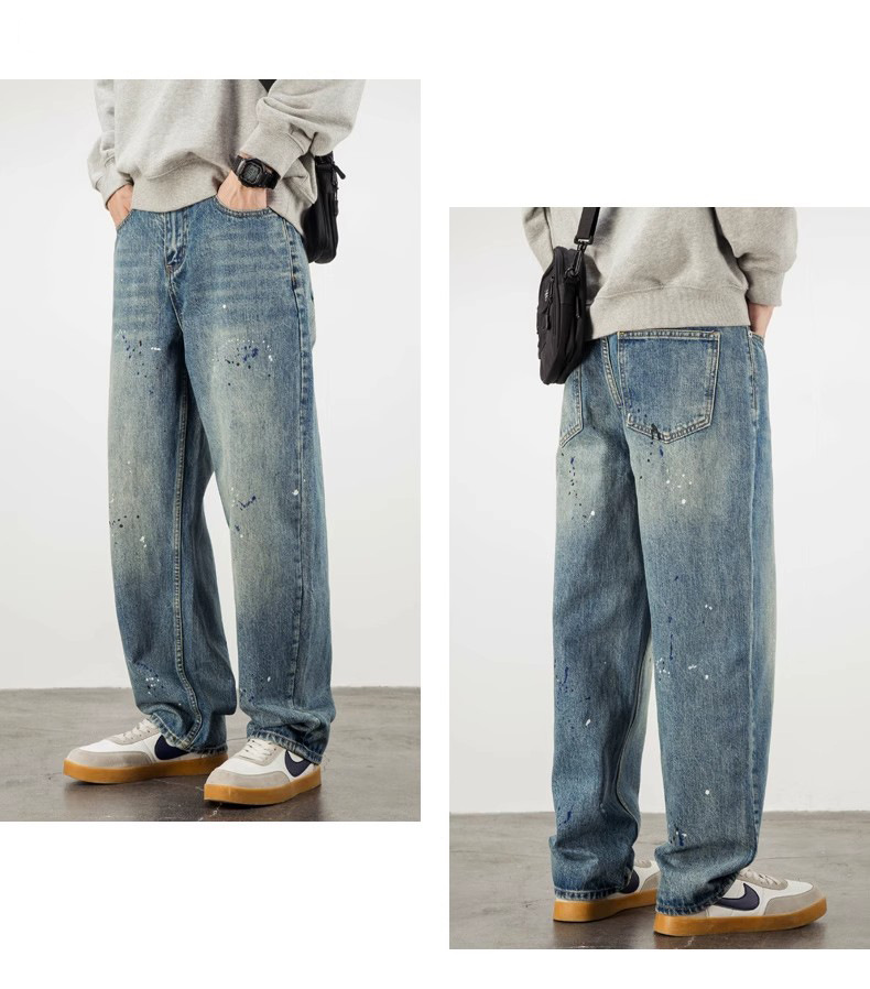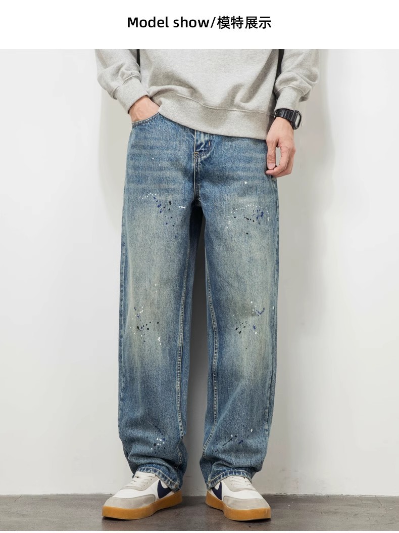 2025 새로운 미국 스타일 레트로 하이 스트리트 플러스 사이즈 루즈 청바지 남성용 세탁 스플래시 페인트 스트레이트 캐주얼 바지 트렌드