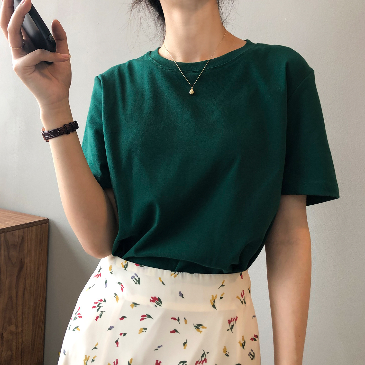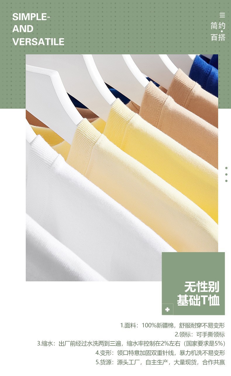 헤비급 230g 솔리드 컬러 티셔츠 반팔 여성용 셔츠 퓨어 화이트 티셔츠 콤비네이션 코튼 남성용 반팔 이너 루즈 여름 퓨어 코튼