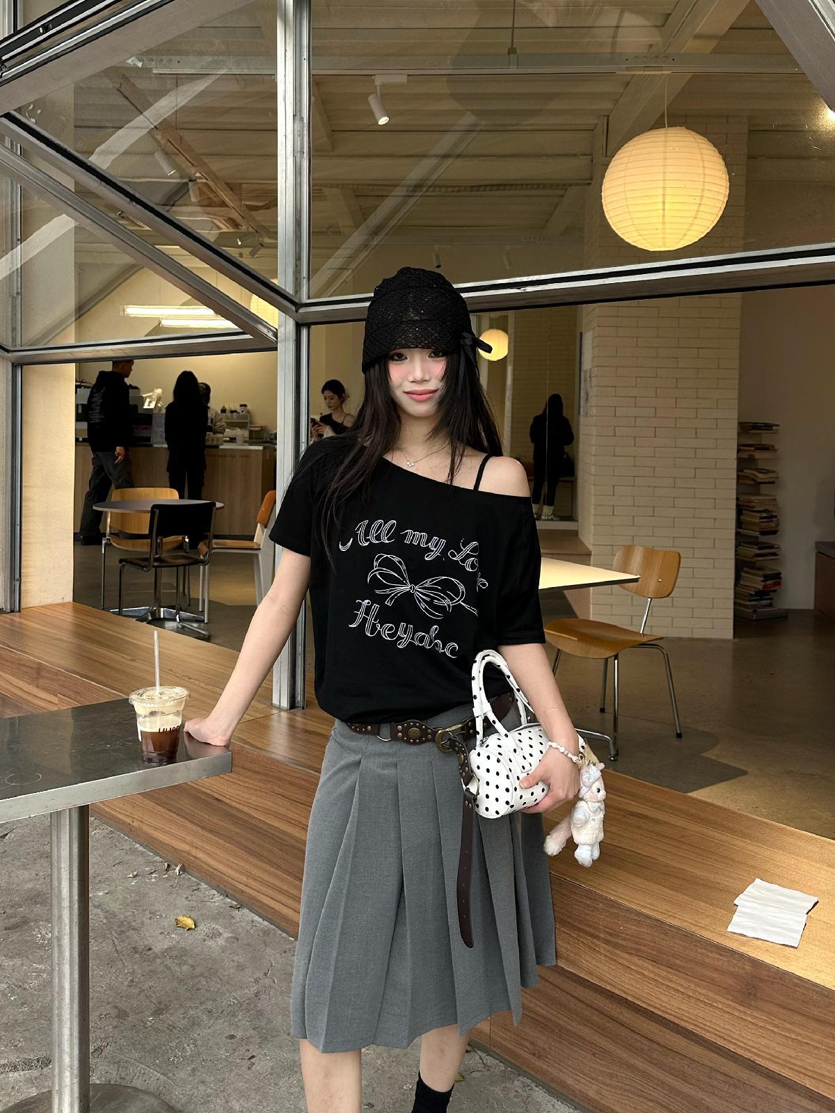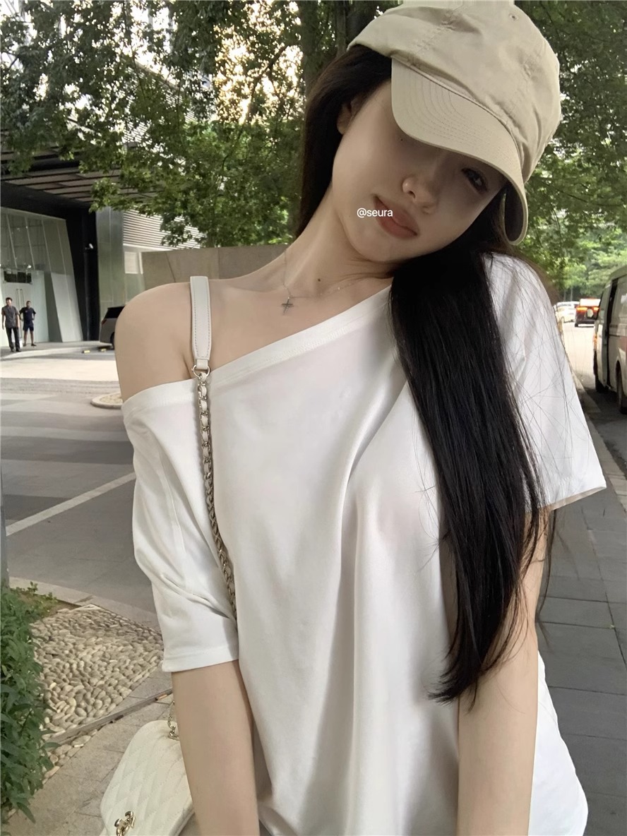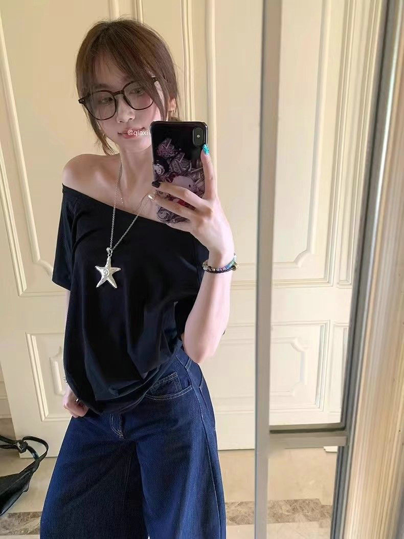 | 上市年份/季节 | 2025夏季 | 颜色 | 斜肩T恤纯棉-藏青色字母白, 斜肩T恤纯棉-藏青色, 斜肩T恤纯棉-白色, 斜肩T恤纯棉-黑色, 斜肩T恤纯棉-藏青色KT猫, 斜肩T恤纯棉-白色KT猫, 斜肩T恤纯棉-白色符文, 斜肩T恤纯棉-藏青色符文, 斜肩T恤纯棉-黑色符文, 斜肩T恤纯棉-藏青色字母黄色, 斜肩T恤纯棉-黑色蝴蝶结 |