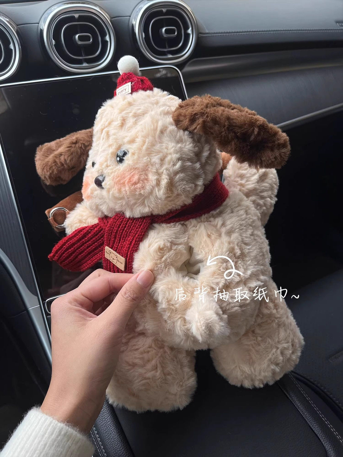 활 파차 강아지 티슈 상자 + 검은색 플러시 어깨 패드 한 쌍