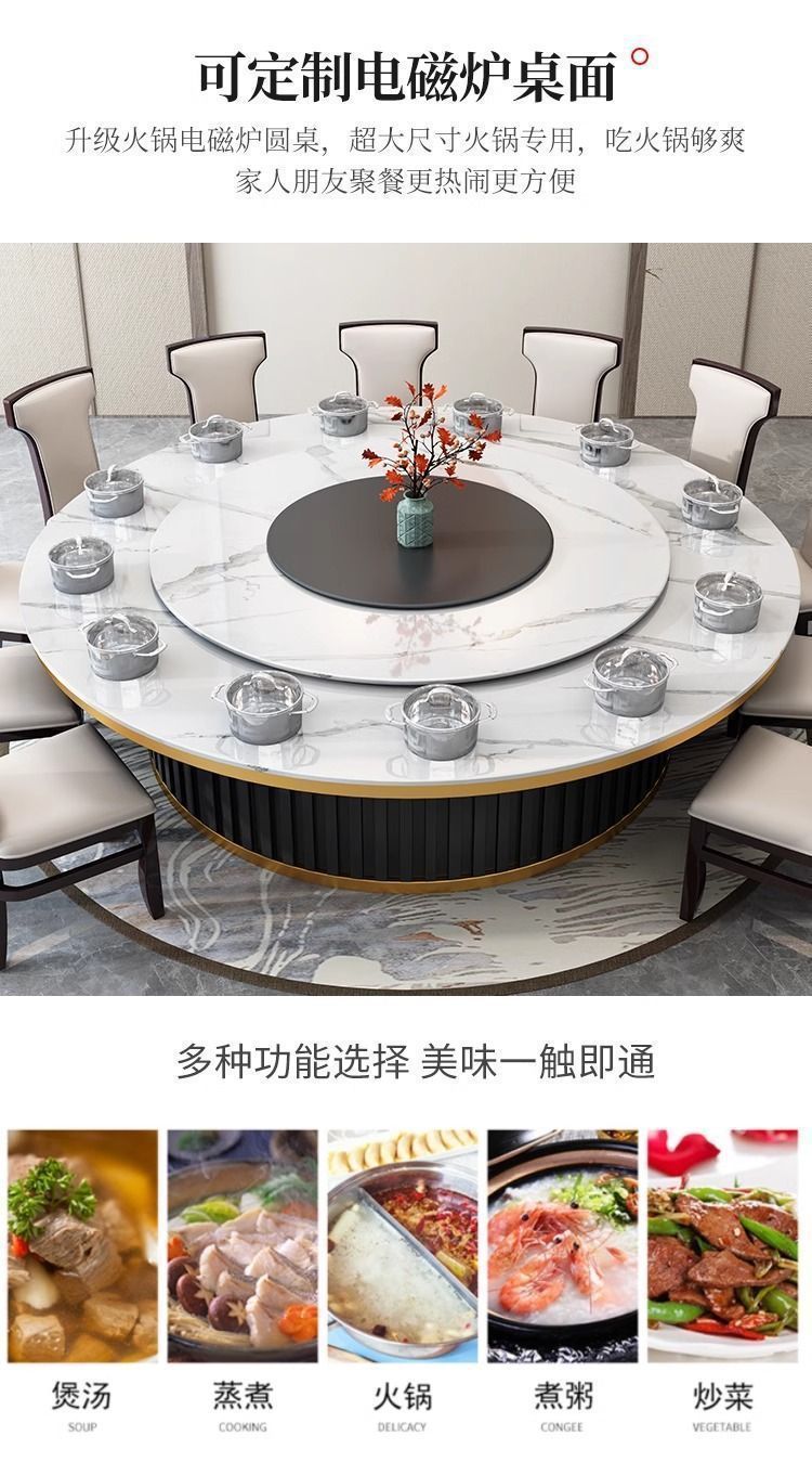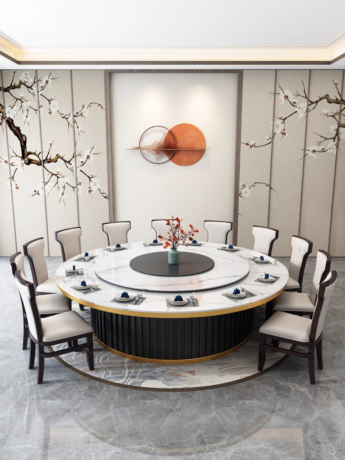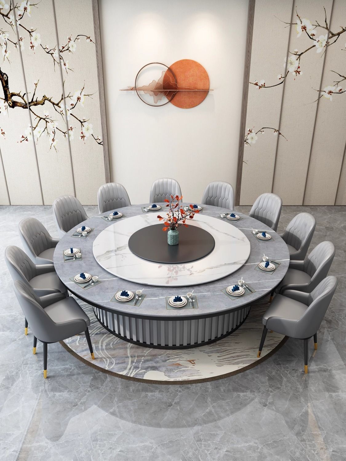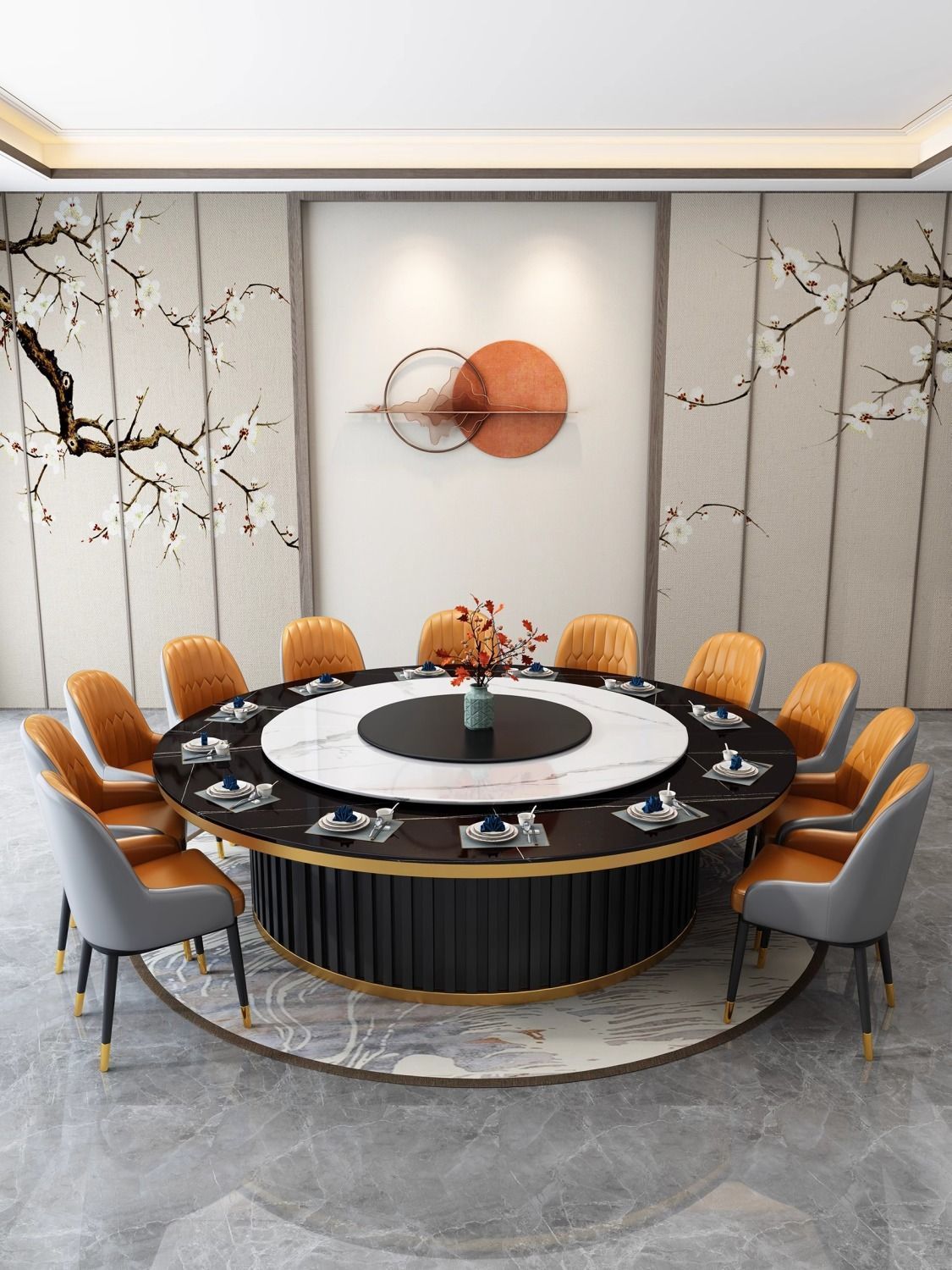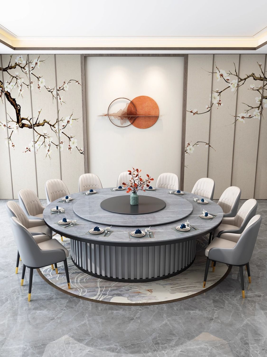 호텔 20 인 호텔 박스 상업적인 빌라 가족 연회 호텔 테이블 및 의자 회전 전기 대형 라운드 테이블 암판 식탁