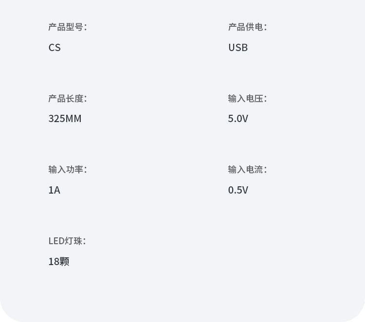 | 灯光颜色 | 小夜灯-USB款-5挡调节-1个(盒装) | 光源功率 | 1A |