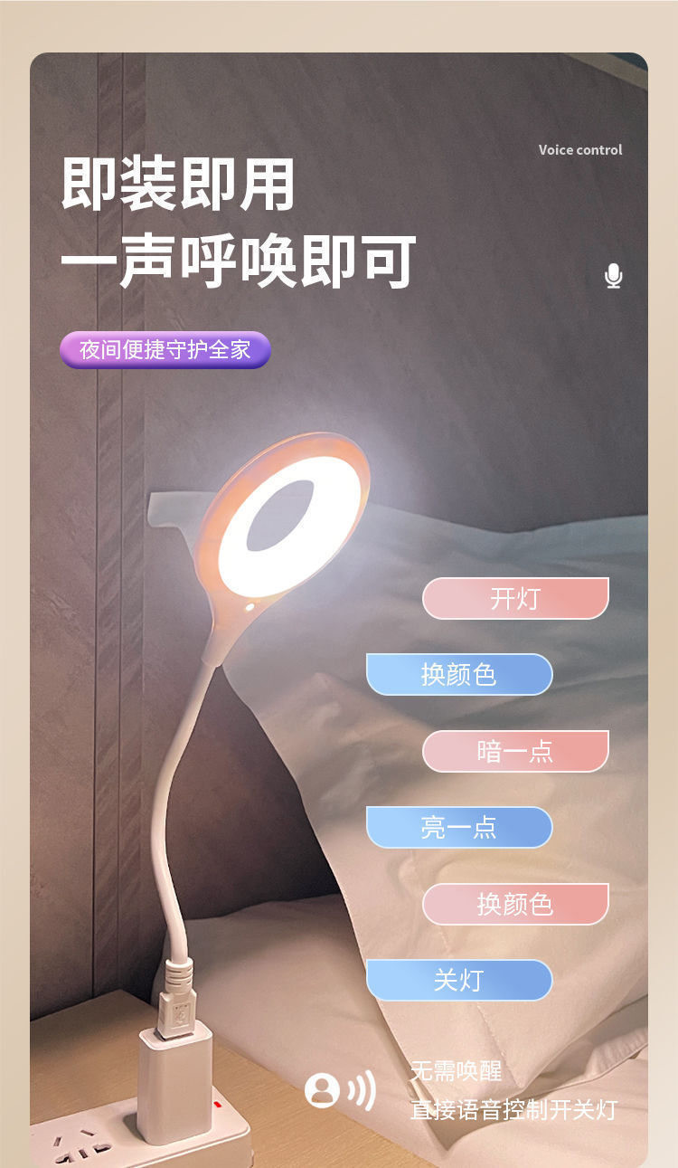 공장 직접 음성 활성화 지능형 음성 제어 학교 침대 기숙사 머리 수면 음성 활성화 책상 램프 지능형 야간 조명
