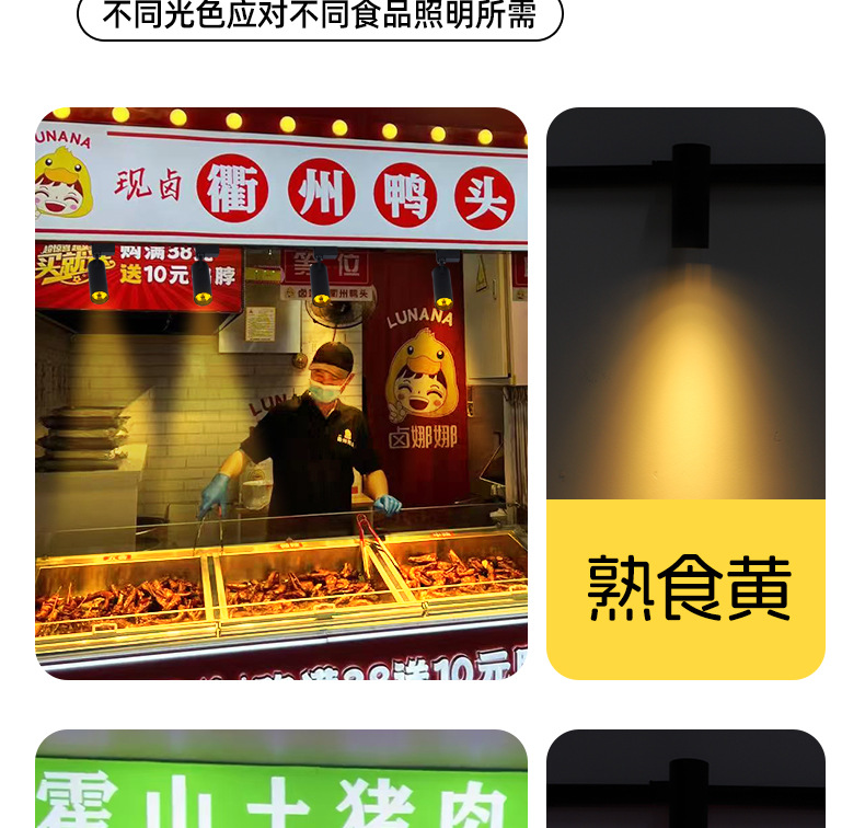 델리 상점을위한 특별한 스포트라이트 절인 야채 절인 고기 로스트 고기 케이터링 마구간 따뜻한 가벼운 식품 상점 상업용 신선한 트랙 조명
