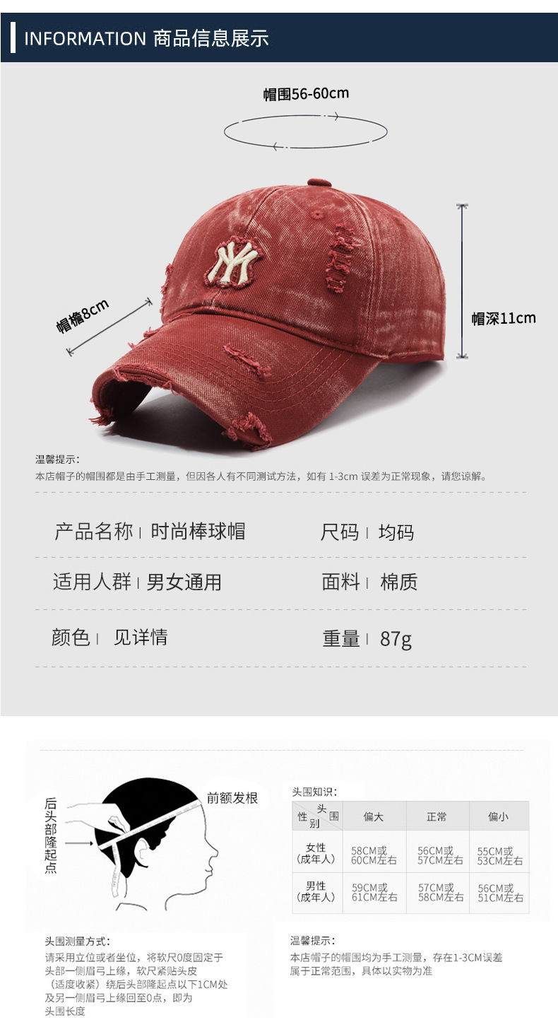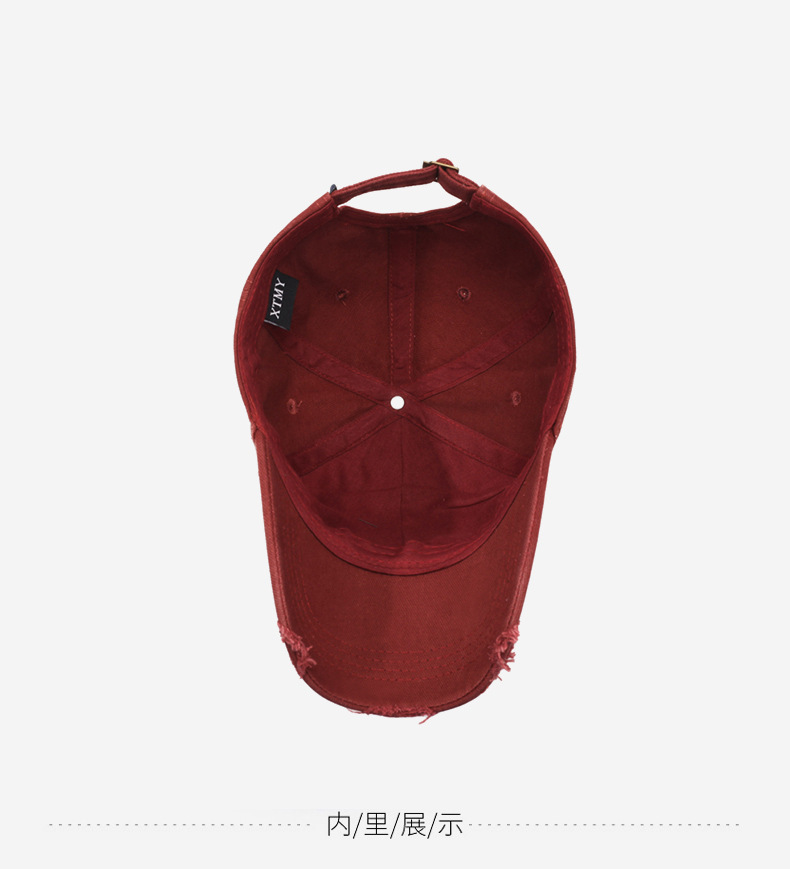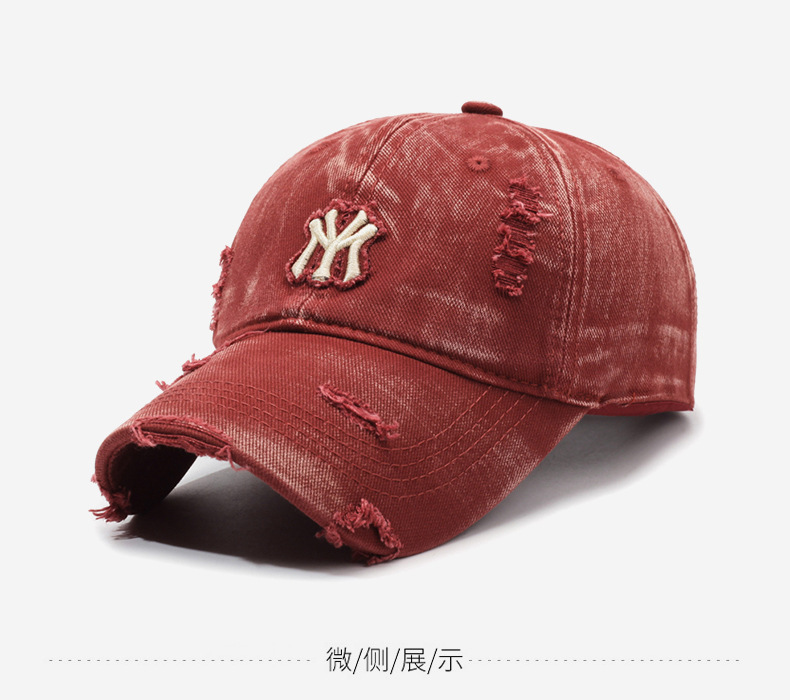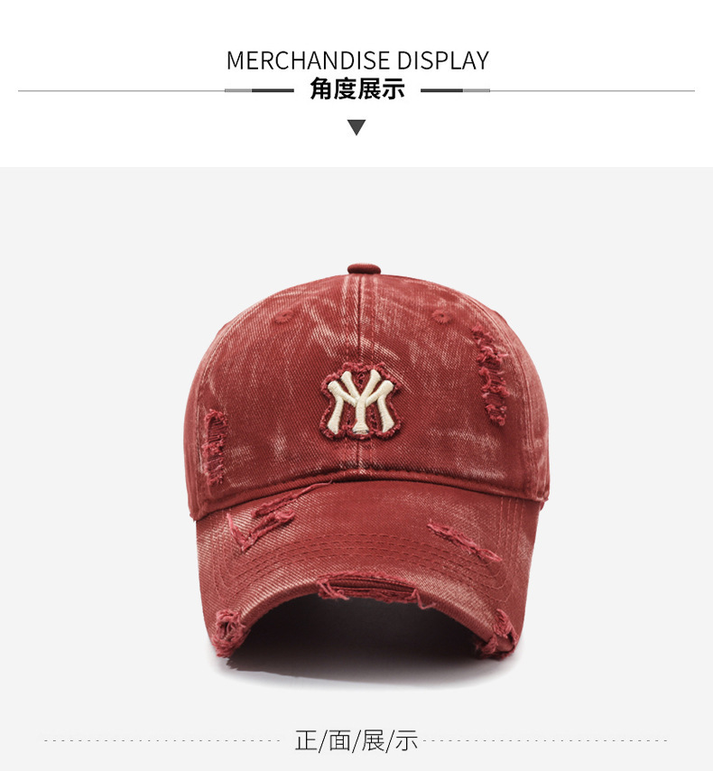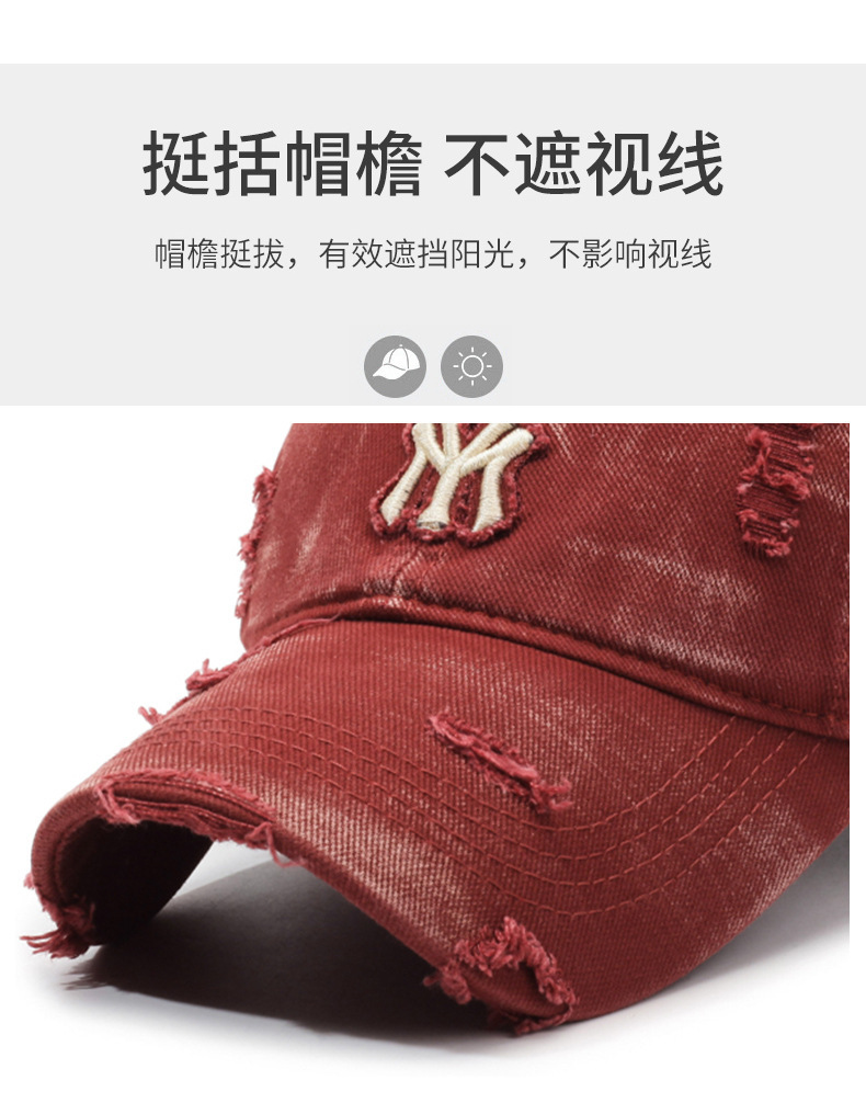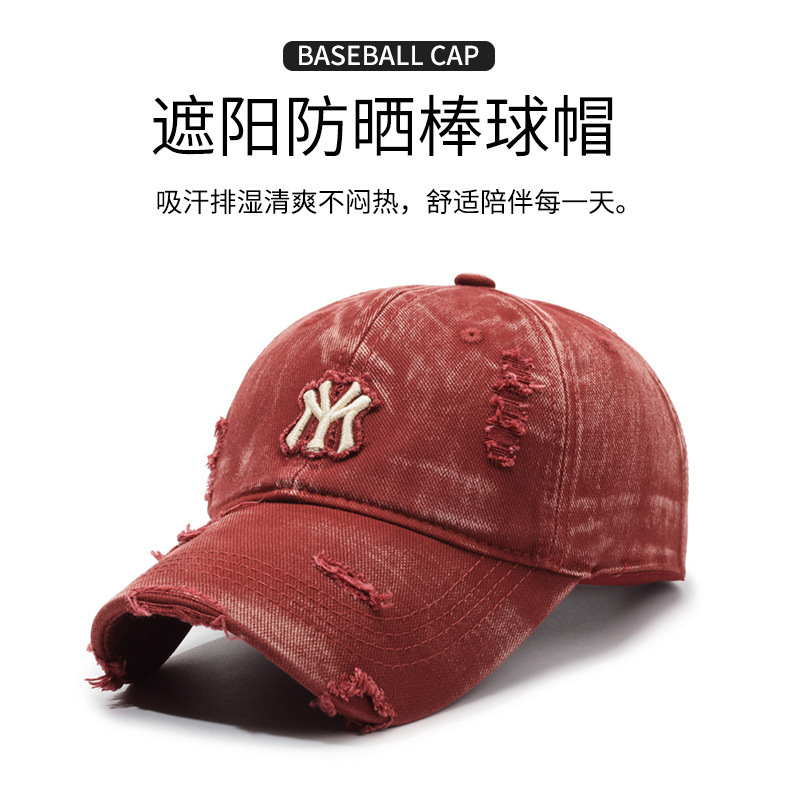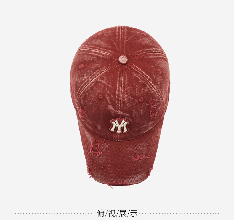 여성용 한국식 찢어진 올 매치 야구 모자, 자수 문자, 캐주얼 패션 소프트 탑 바이저 크로스보더