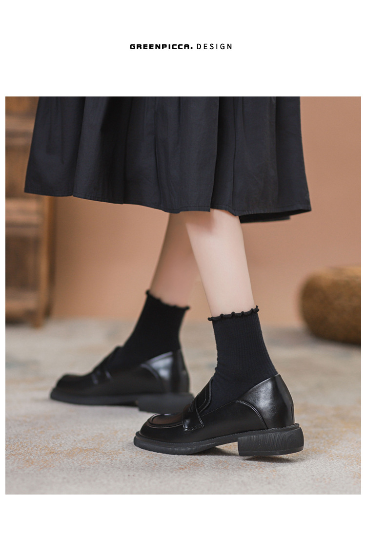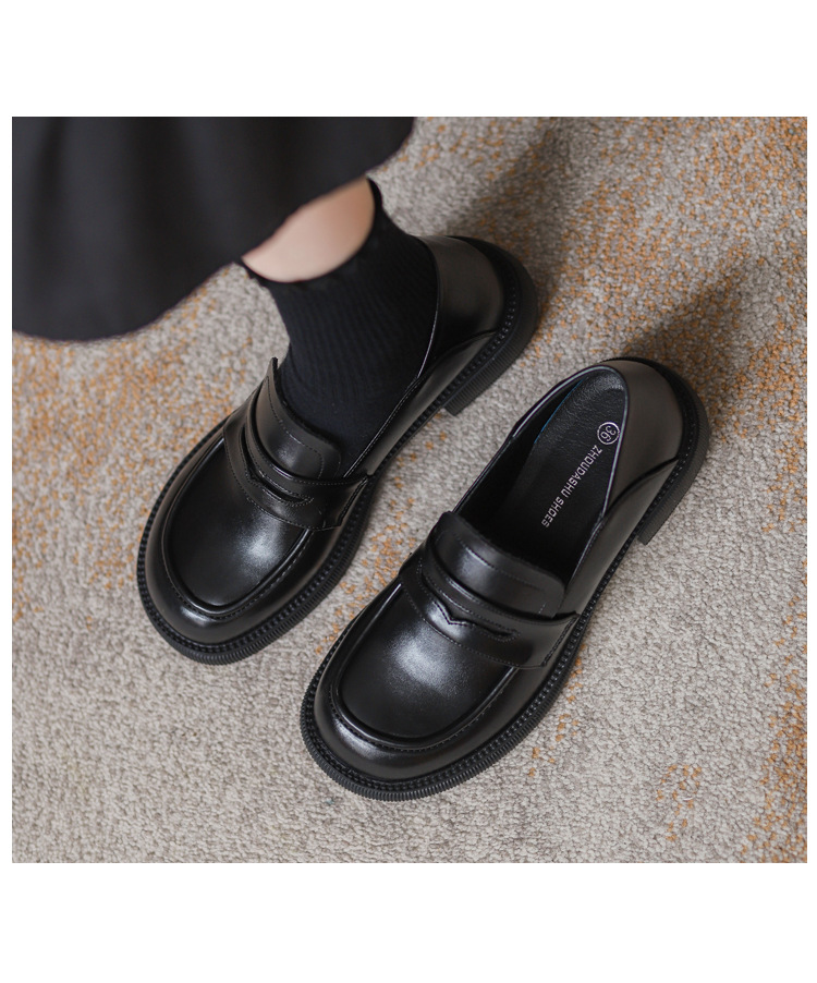 여성용 정품 가죽 로퍼 통근 정장 블랙 봄, 가을 플랫 슬립 온 부드러운 가죽 영국 스타일 여성용 작은 가죽 신발 대형