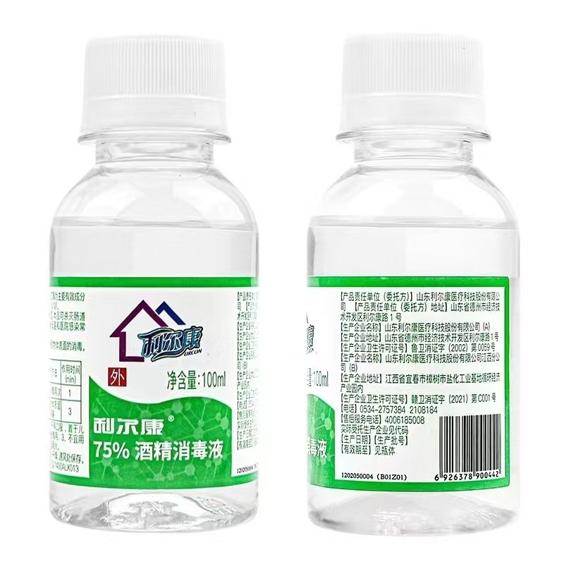 Lierkang 75% 알코올 소독제(녹색) 의료용 100ml/병--1병