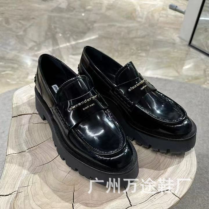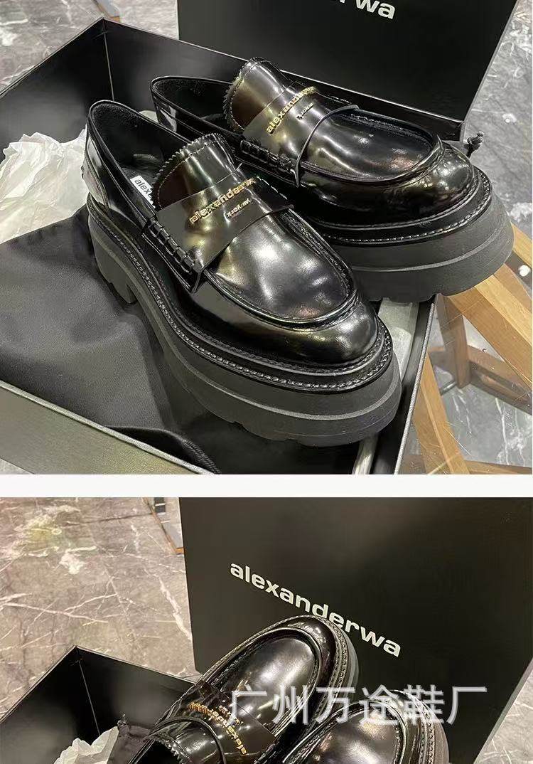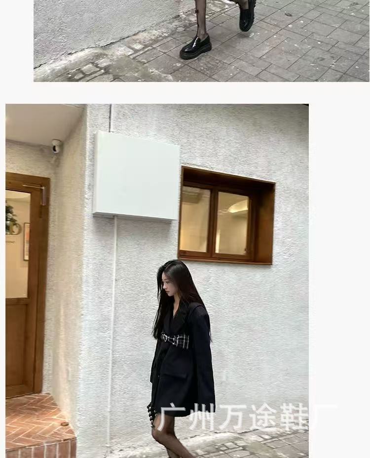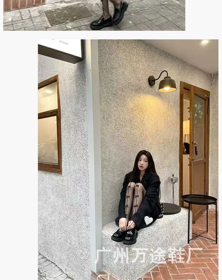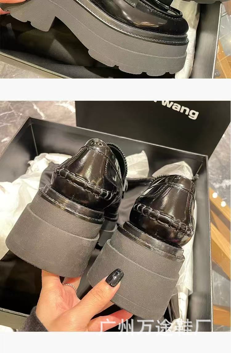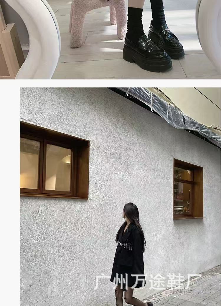 왕야옹과 같은 스타일의 여성용 두꺼운 밑창 로퍼, 영국 스타일 플랫폼 밑창 다용도 가죽 신발, 여성용 낮은 굽
