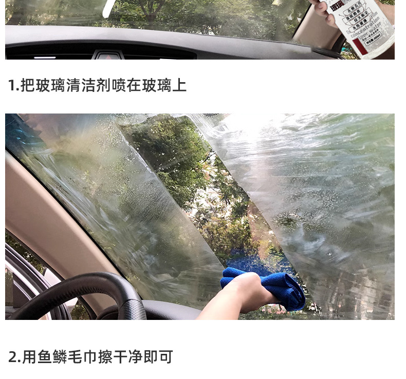 차량용 유리 내부 세정제 차량 앞유리 오일 필름 제거 실내 세정 오일 제거제 한 번 닦기만 하면 깨끗해짐