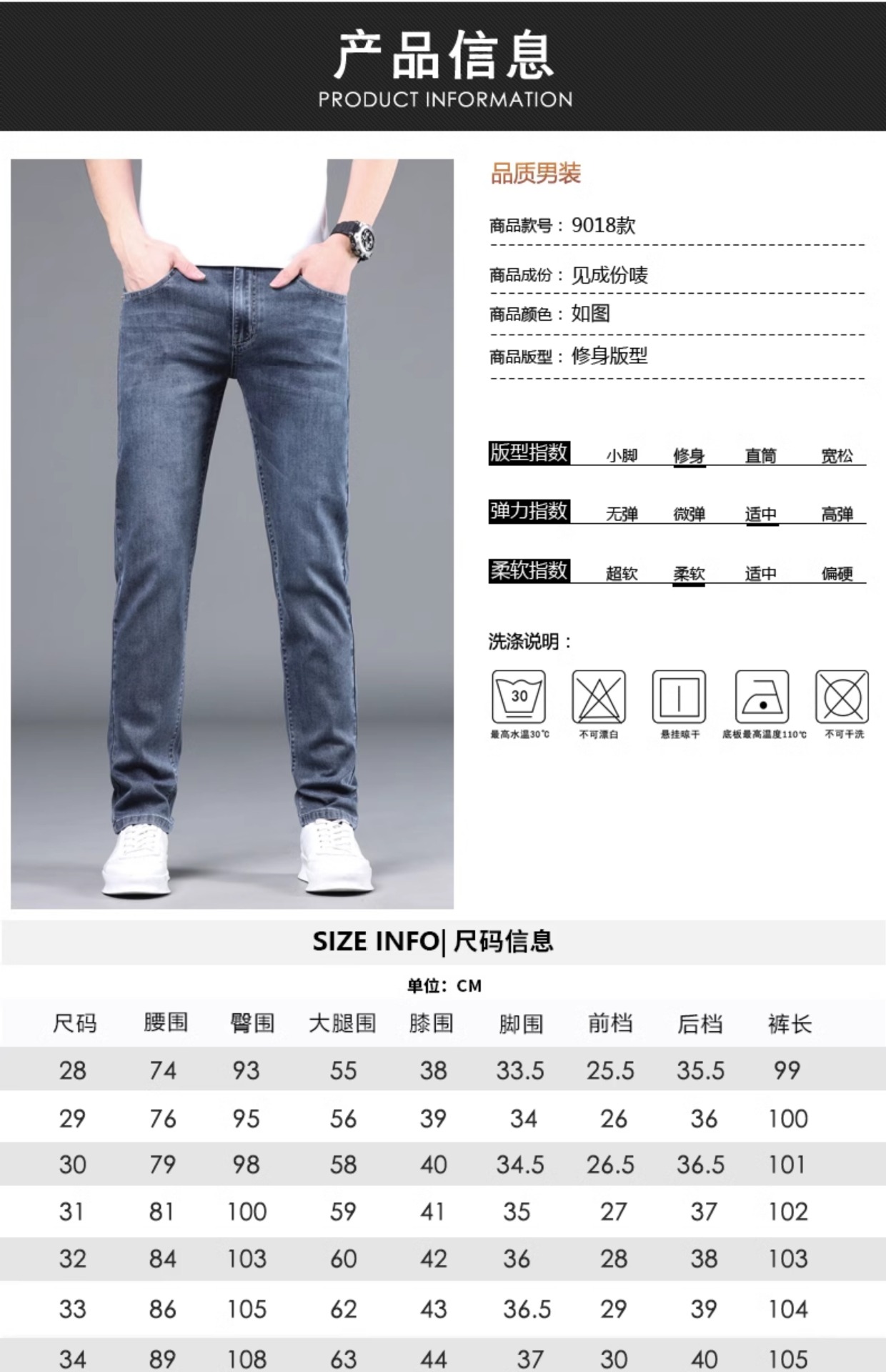 | 颜色 | 佰9018-1雾霾蓝(春秋季), 佰9018-3黑灰(春秋季), 佰9018-2深蓝(春秋季), 佰9016-2蓝黑(春秋季), 佰9016-3黑色(春秋季), 佰9019-2兰灰(春秋款), 佰2008-2灰色(春秋款), 佰2008-3黑色(春秋款), 佰2008-8烟灰色(加绒款), 佰2008-8黑色(加绒款), 佰9019-8浅蓝(加绒款), 佰9019-9深蓝(加绒款), 佰6607-8蓝色(加绒款), 佰9024-8烟灰色(加绒款), 佰9024-9黑灰色(加绒款), 佰9019—12蓝色(夏季薄款), 佰9019-1浅蓝(春秋款), 佰9019—11浅蓝色, 佰9018—11蓝灰色(夏季薄款), 佰9018—12雾霾蓝, 佰9018—13黑灰色(夏季薄款), 佰9016—12浅灰蓝(夏季薄款), 佰9016—13中灰蓝(夏季薄款), 佰6607—12深蓝色(夏季薄款), 佰2008—12灰色(夏季薄款), 佰2008—13黑色(夏季薄款), 佰9022—12蓝色(夏季薄款), 佰9022—13黑蓝色(夏季薄款), 佰9024—11浅蓝色(夏季薄款), 佰9024—13黑灰色(夏季薄款), 佰9024—12烟灰色(夏季薄款) | 尺码 | 28, 29, 30, 31, 32, 33, 34, 35, 36, 38, 40 |