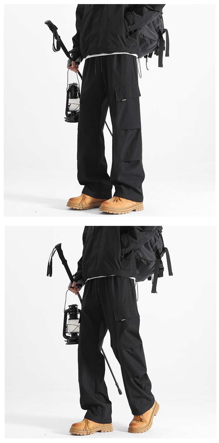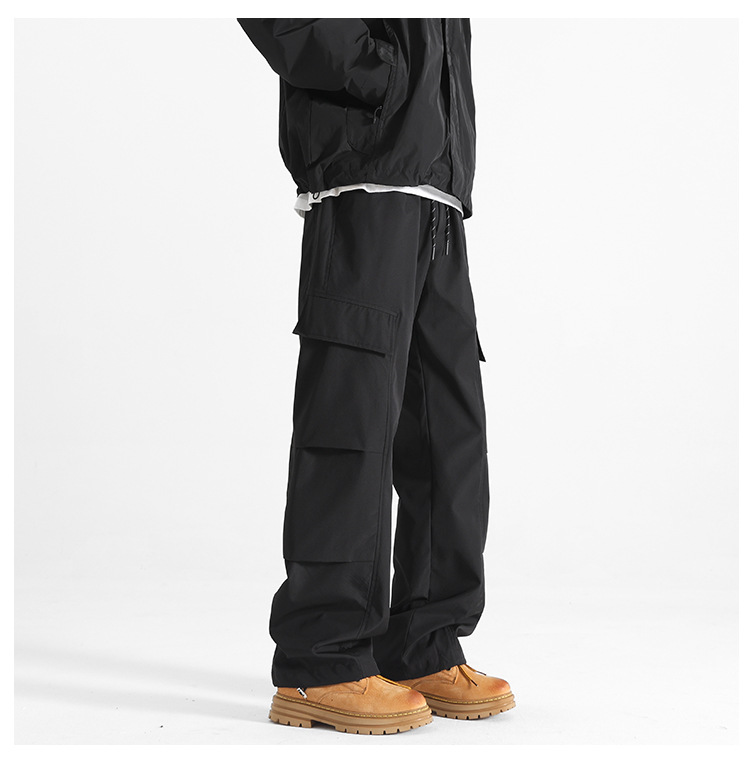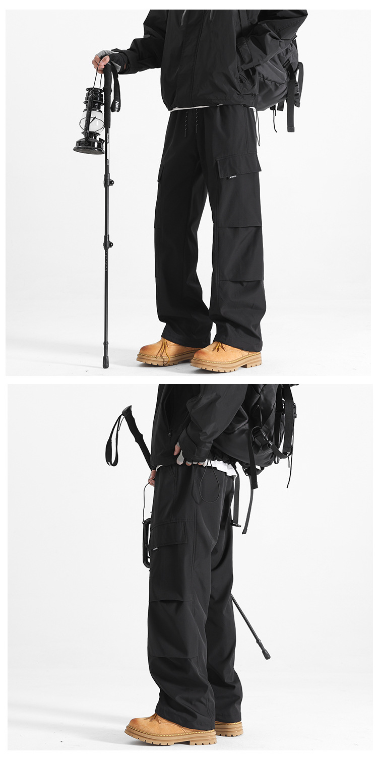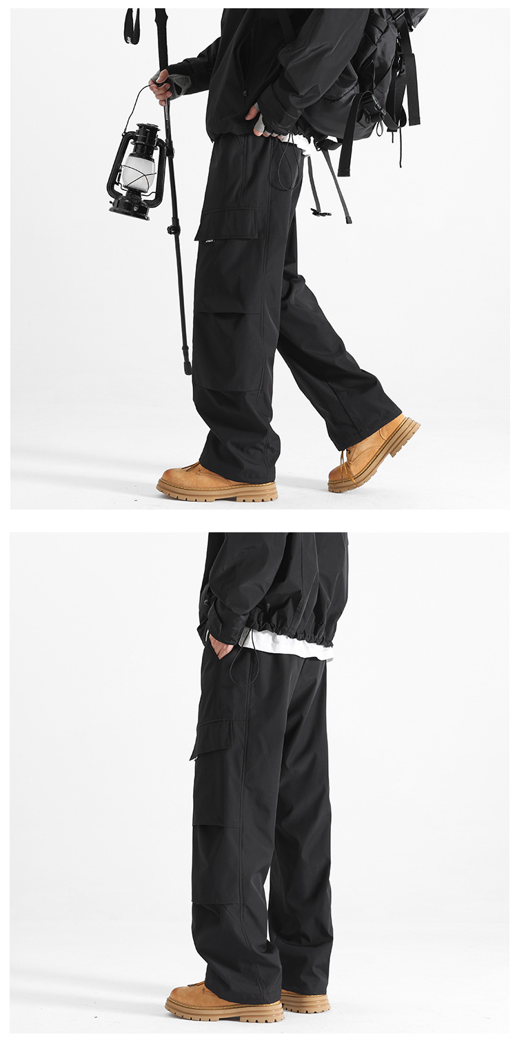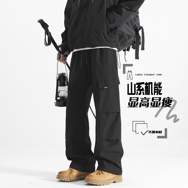 HK9560 플리스 안감 남성용 겨울 두꺼운 일자핏 작업복 바지 남성용 루즈핏 아웃도어 스포츠 바지 남성용 바지