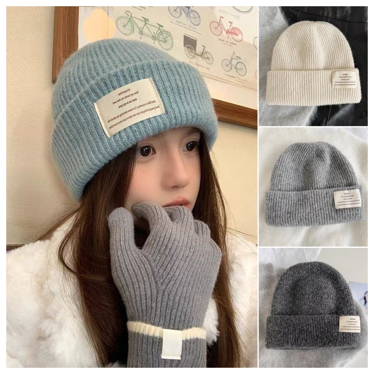여성용 가을 겨울 문자 로고 대형 헤드 니트 모자, 한국식 두꺼운 따뜻한 터번 모자, 얼굴이 보이는 작은 귀 보호 모직 모자