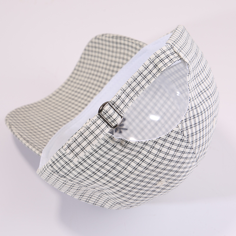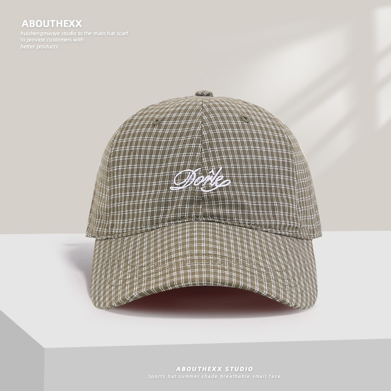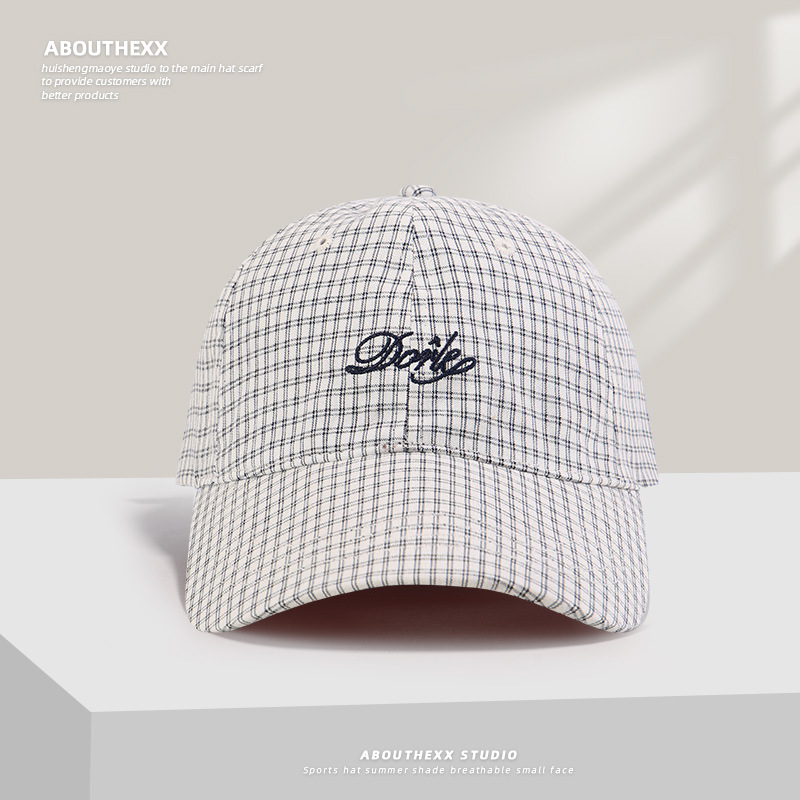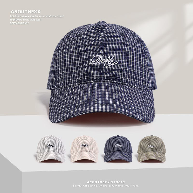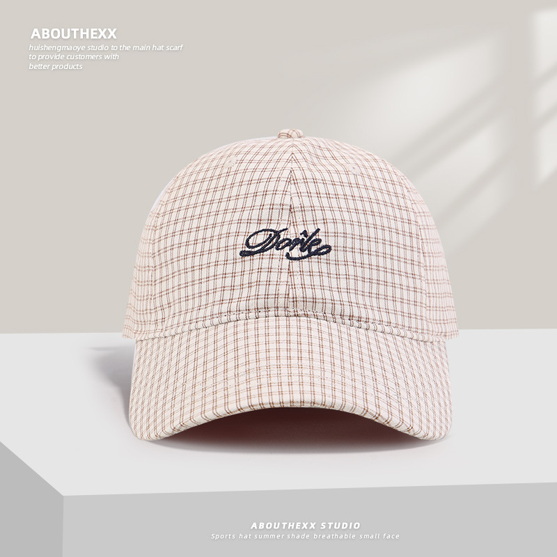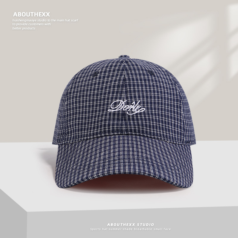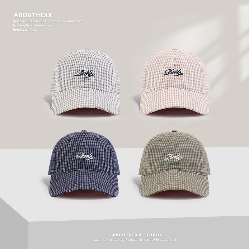 한국의 새로운 격자 무늬 문자 자수 남성과 여성을 위한 오리 혀 모자, 여름용 다용도 챙이 넓은 소프트 탑 야구 모자로 얼굴을 작게 보이게 합니다.