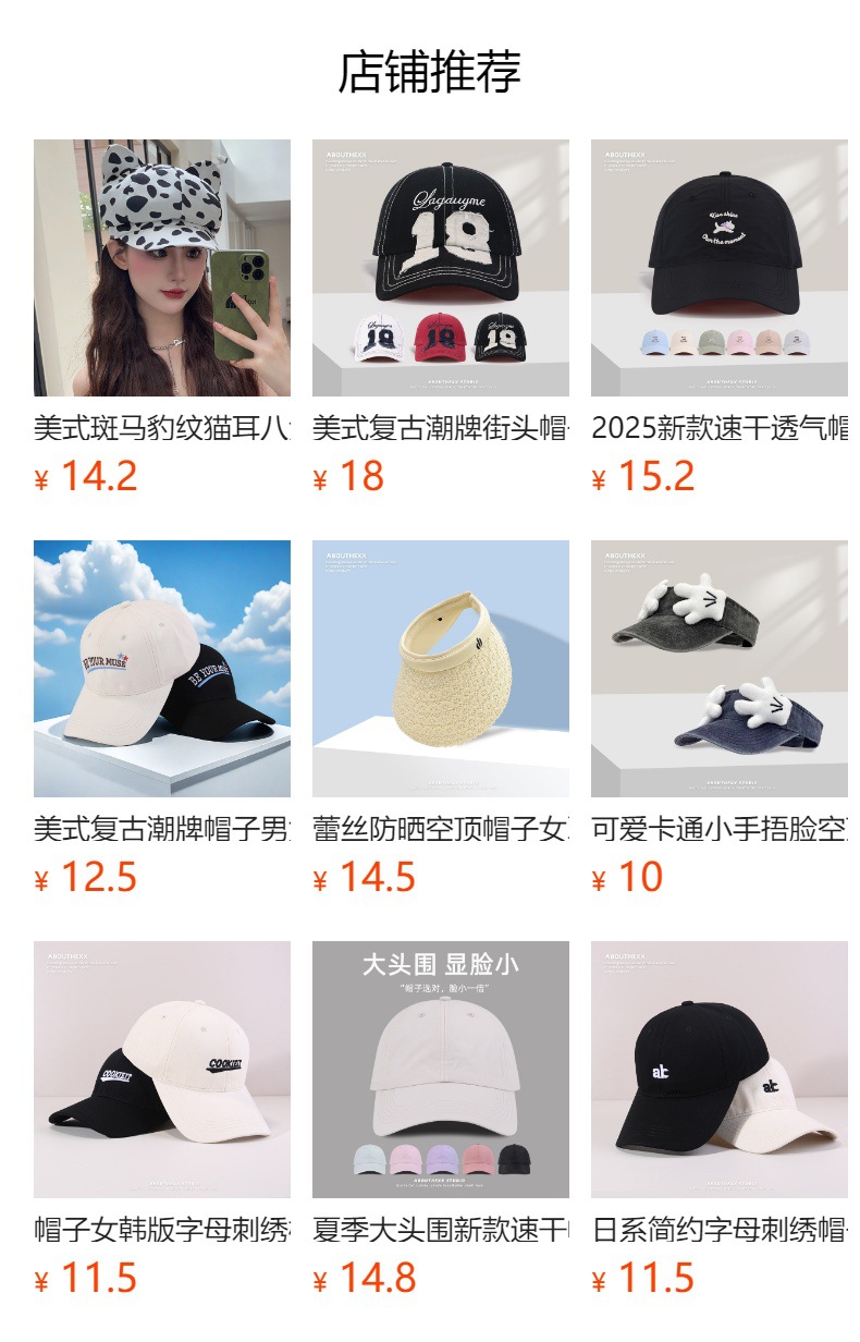 | 产品类别 | 鸭舌帽 | 流行元素 | 英文字母 |
