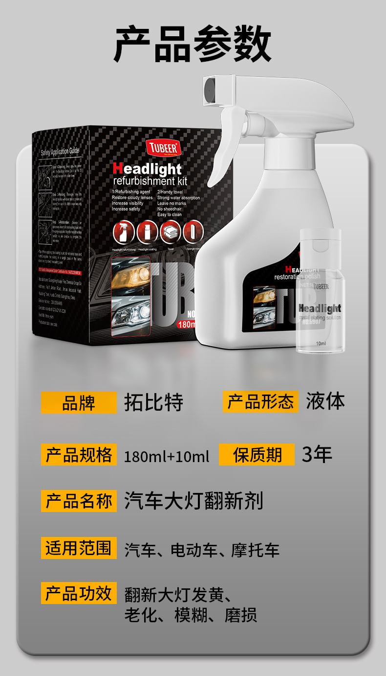 | 类型 | 大灯翻新剂 | 主要成分 | 液体 |