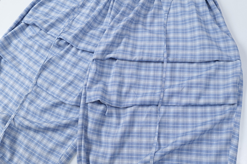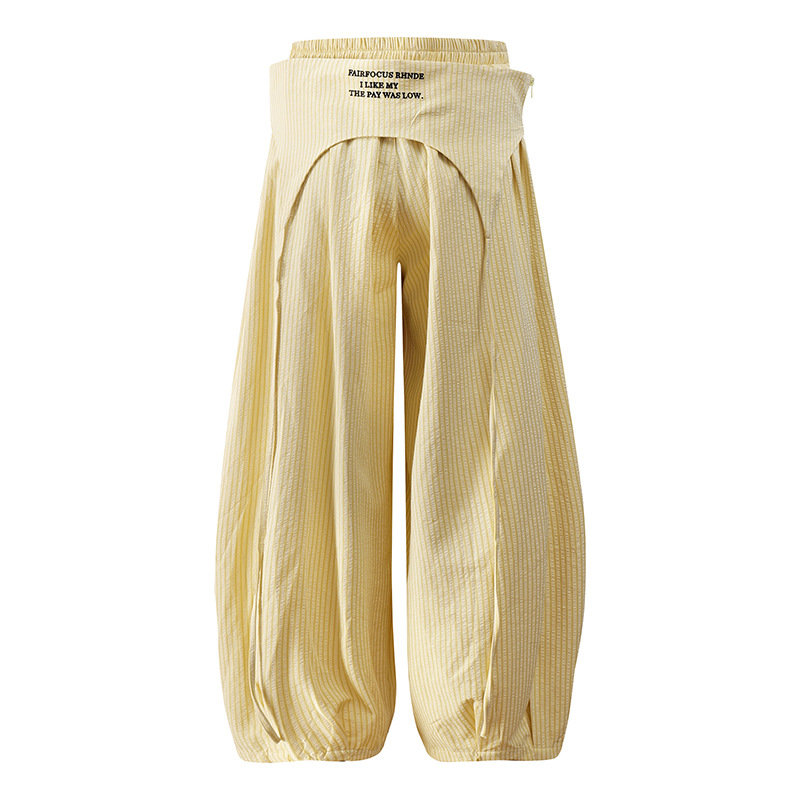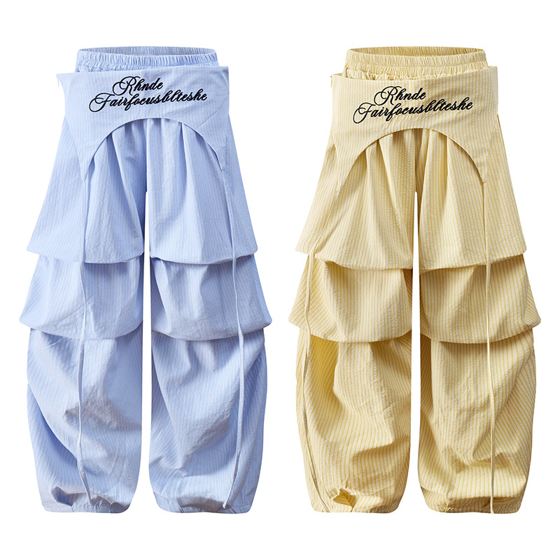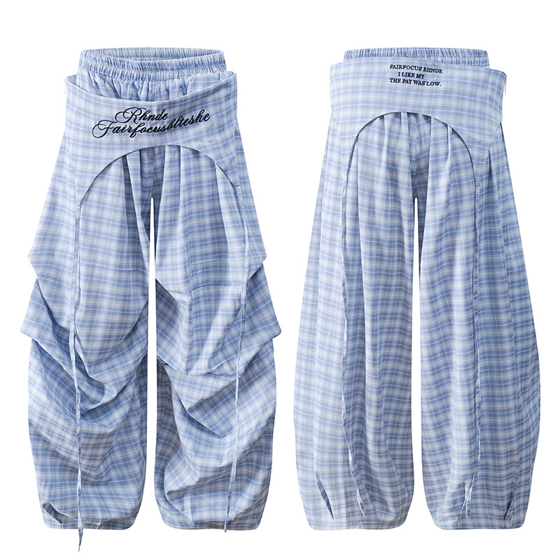 남성복 오리지널 아메리칸 레트로 플리츠 끈 리본 레터 체크 무늬 와이드 팬츠 여성 재즈 댄스 팬츠