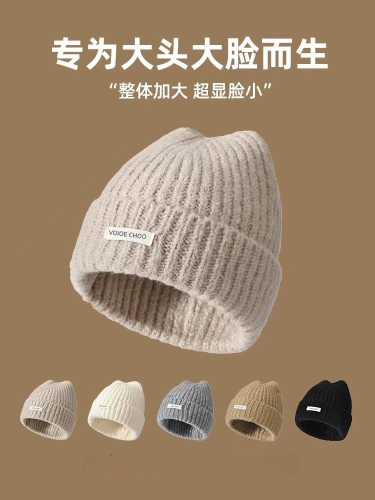 여성용 모자, 두꺼운 모직 모자, 가을 겨울 귀 보온, 큰 머리 둘레, 귀 보호, 발가락 보호, 방한 모자, 얼굴이 보이는 작은 산후 니트 모자