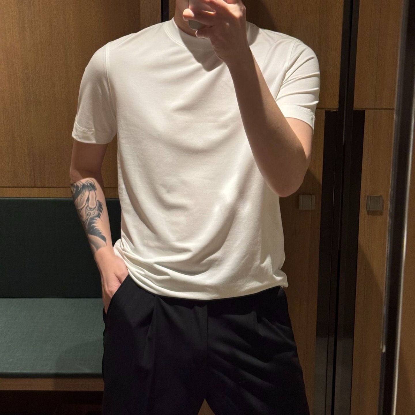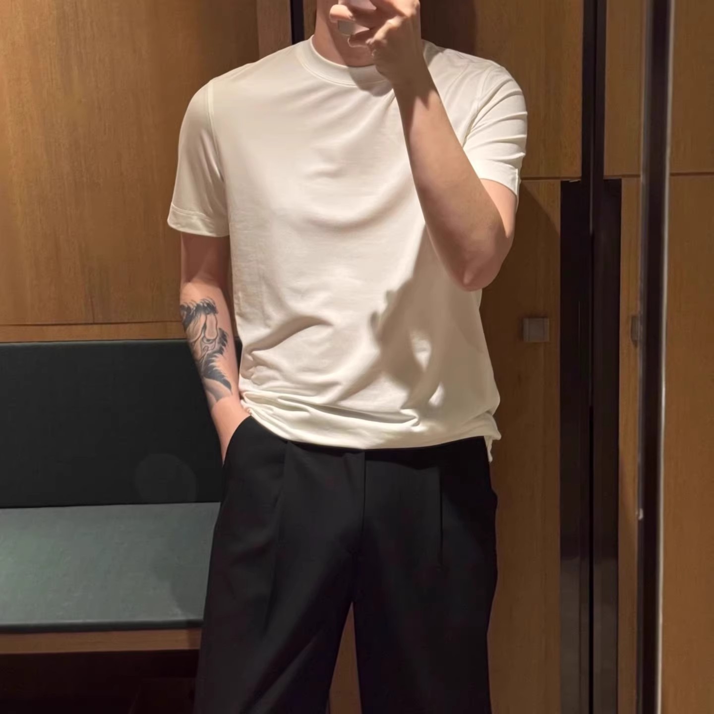 [유럽산 라이트 럭셔리] 시원한 여름 시리즈 슈퍼 소프트 피부 친화적인 순색 라운드 넥 남성용 화이트 캐주얼 다용도